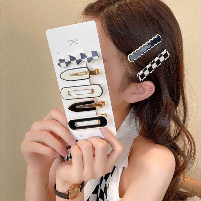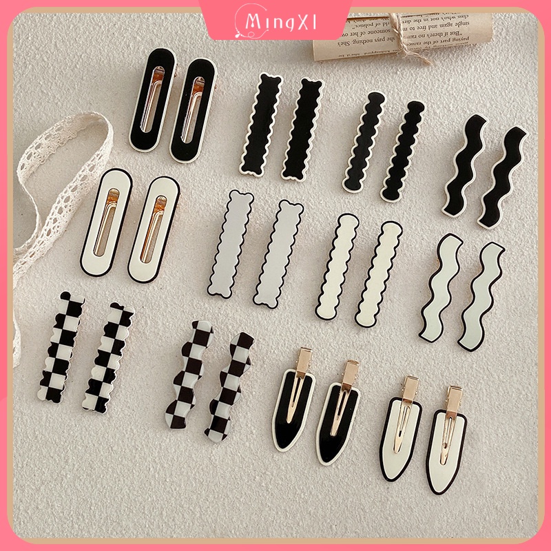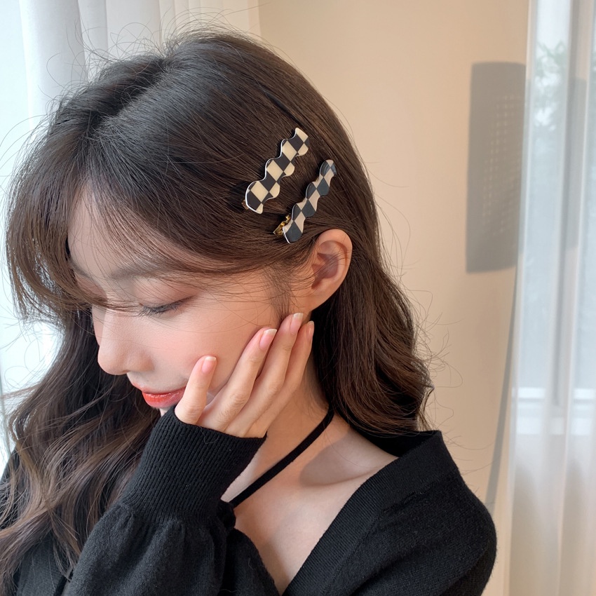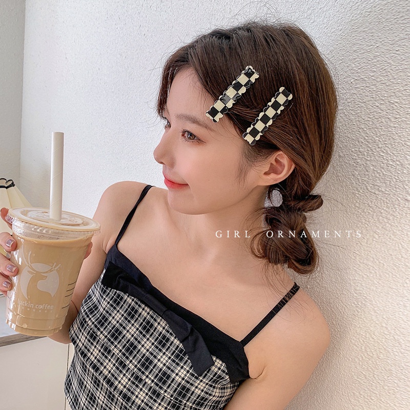 2/4/6 Pcs/set Black and White Checkerboard Seamless Hair Clip Korean Version Small Size Bangs Side Hairpin Women's Hair Accessories