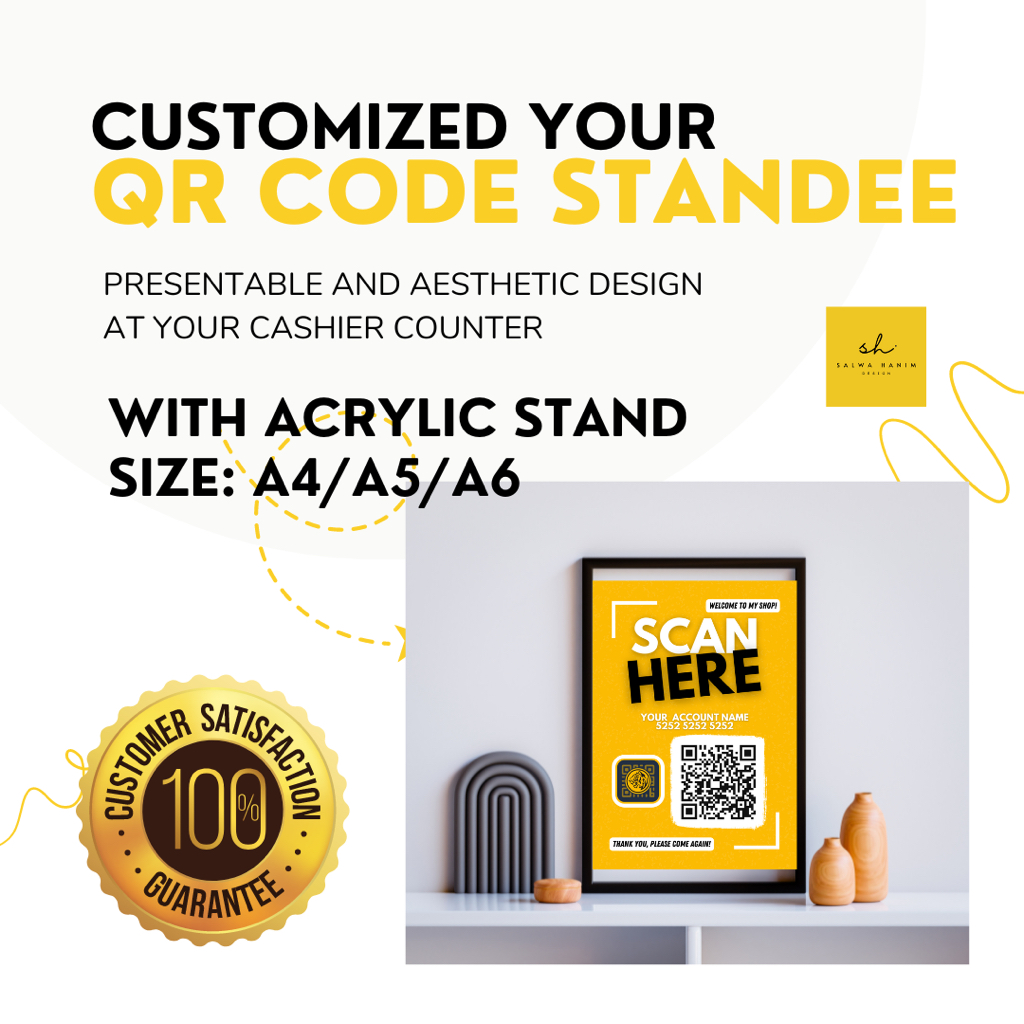 2 CUSTOMIZED QR CODE on Acrylic Standee A4 A5 MAE Touch&Go DuitNow