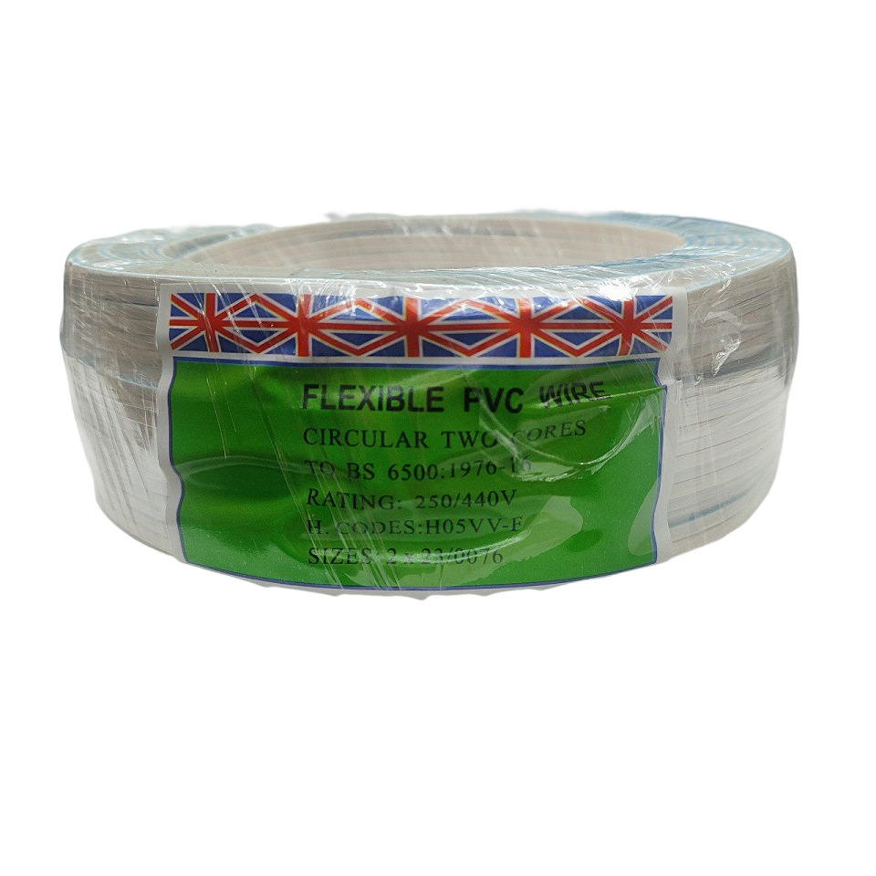 2 Core x 23 (0.5mm) White PVC Flat Flexible Wire Supply Electrical Cable