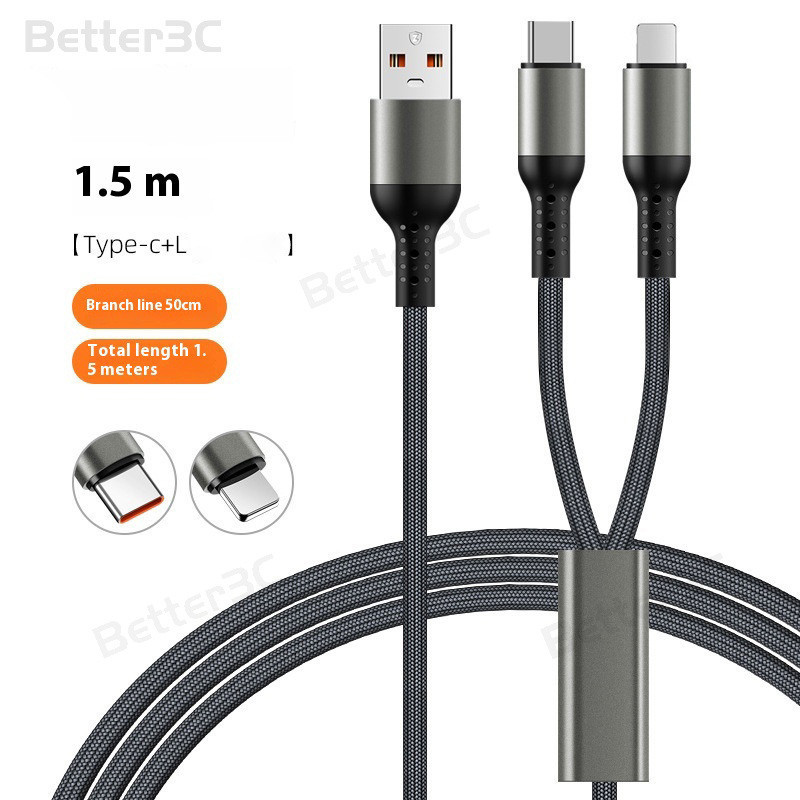 2 In 1 Super Fast Charging Cable 100W Dual Head Flash Charging Data Cable 6A USB Transmission Data Line For ios15 Type C Micro Charger Cord