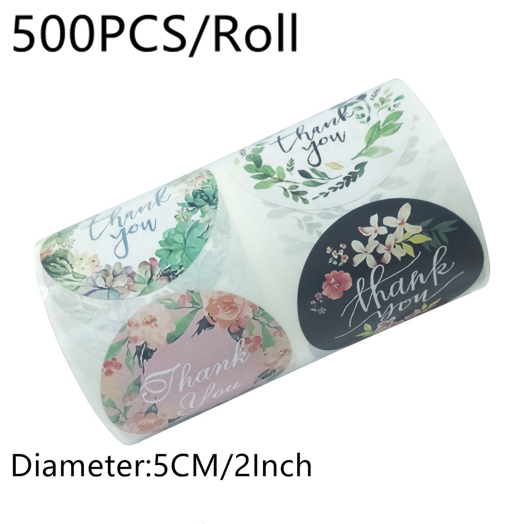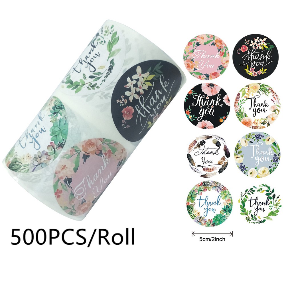 2 Inch Round Floral Thank You Stickers 500pcs for Wedding Favors and Party Handmade Gife Envelope Seal Stationery Sticker