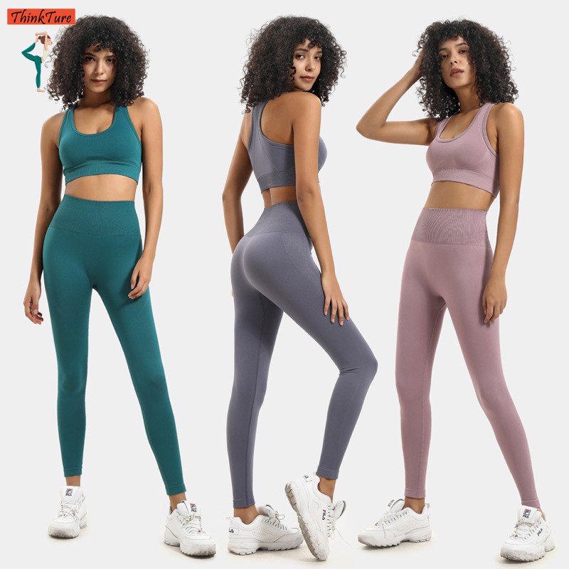 ThinkTure Two Piece Outfit for Women Yoga Set Sportswear Fitness Gym Running Suit Exercise Clothing Seamless Sleeveless Sports Suit Workout Yoga Clothes For Women Breathable Tracksuit Yoga Clothing Set Sports Wear Women X0107S2