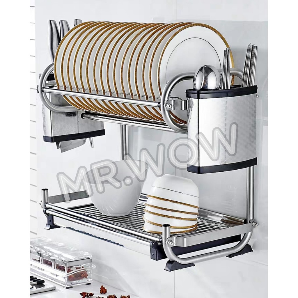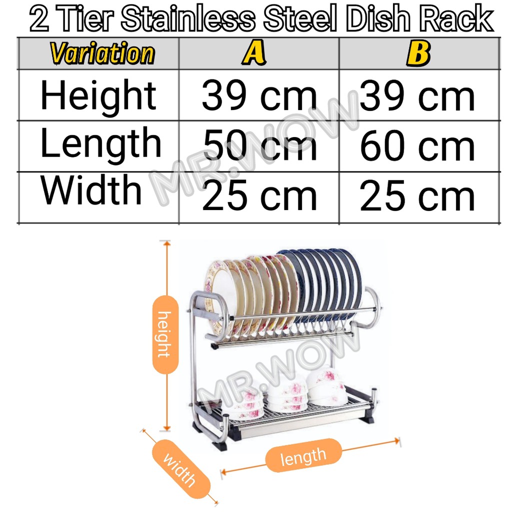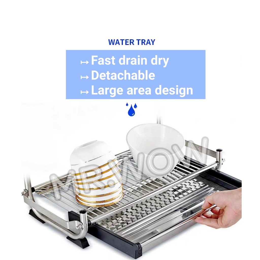 2 Tier 304 Stainless steel dish rack with water tray / drying rack/ dish plate holder/ kitchen storage / rak pinggan
