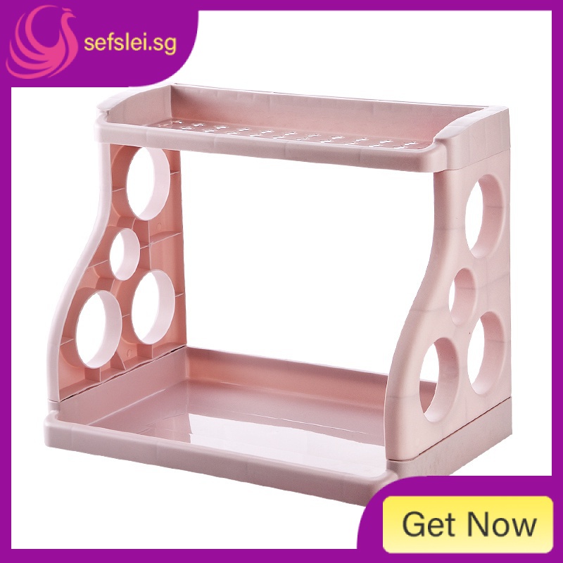 2 Tier Condiment Storage Rack Multi-functional Kitchen Seasoning Rack Knife Organizer Display Shelf for Kitchen Countertop Bathroom Bedroom Q9UL