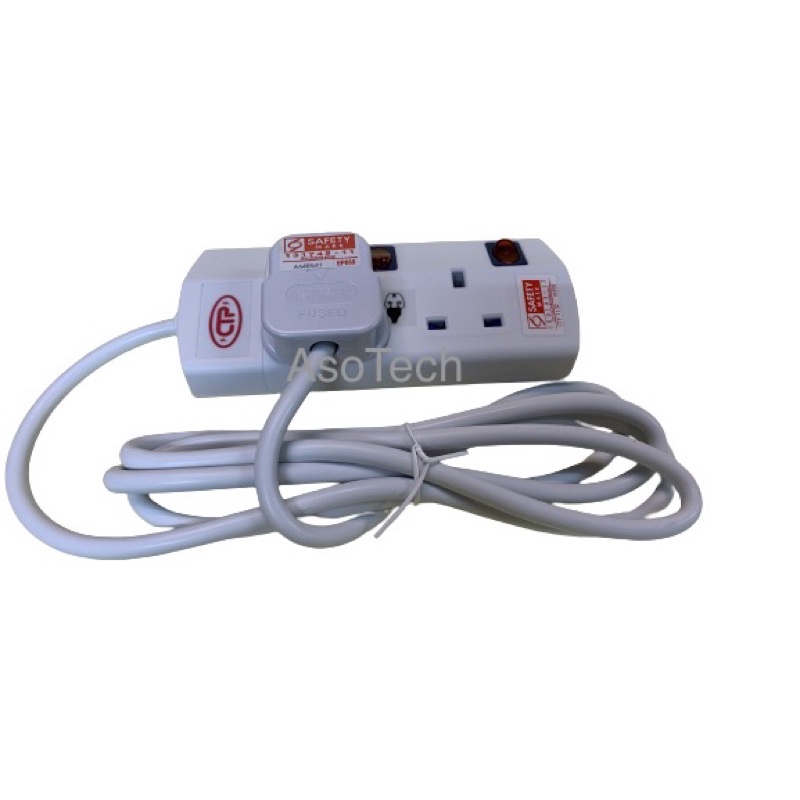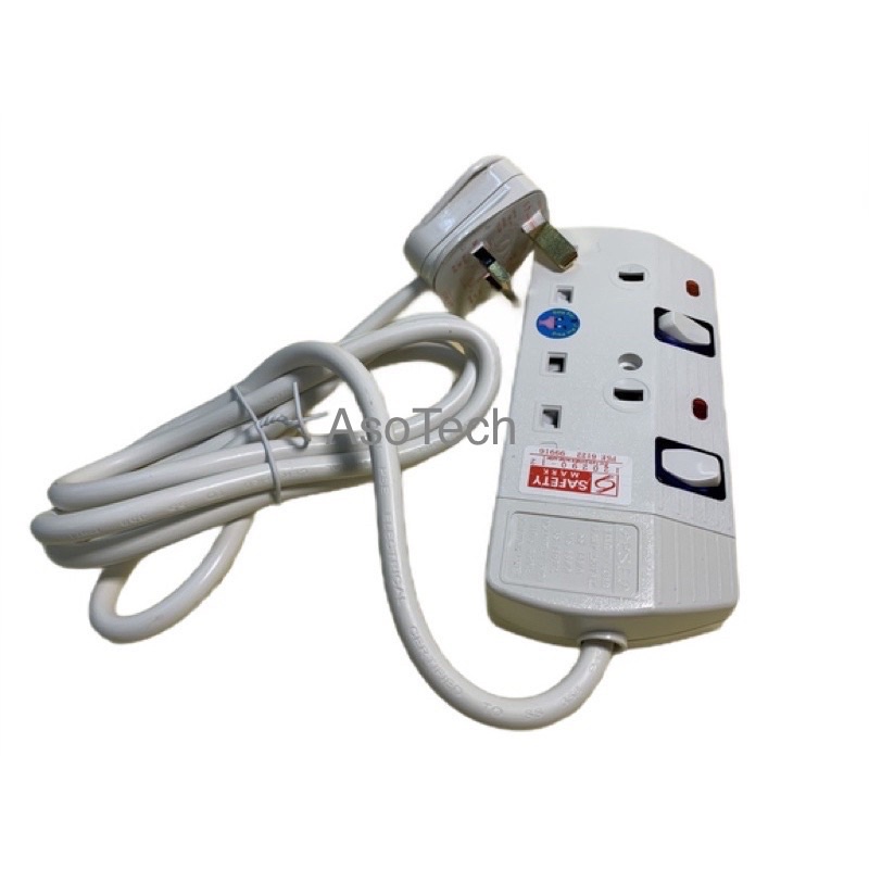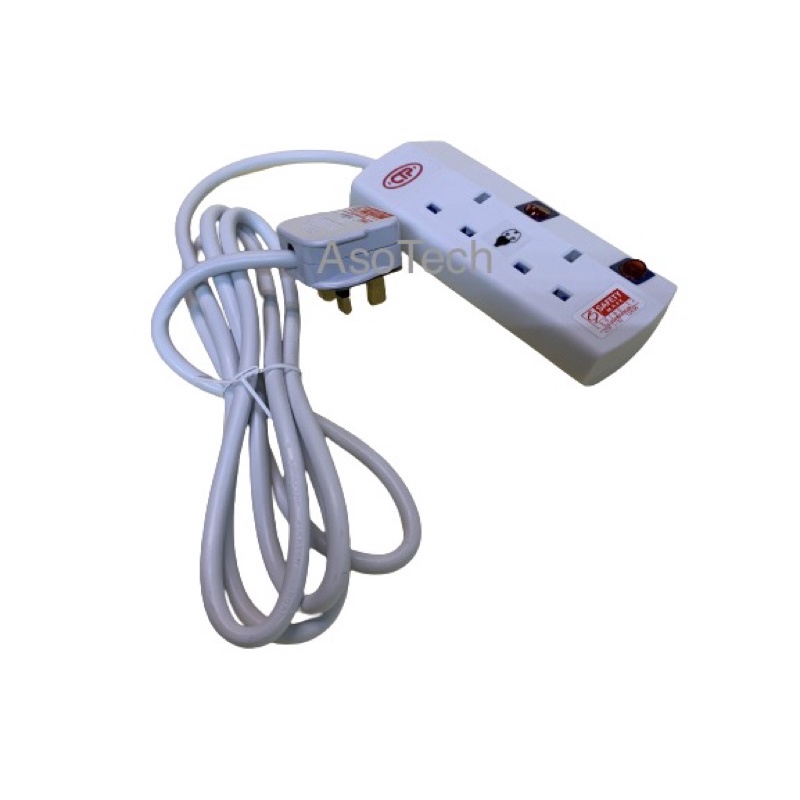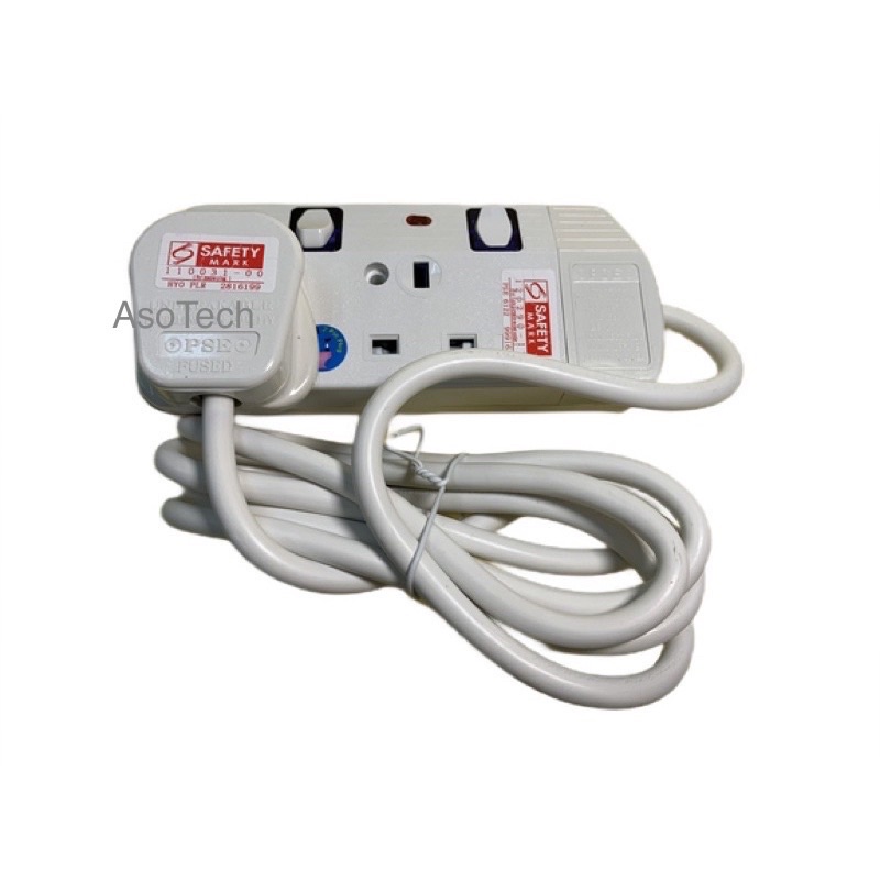 2 Way Gang 2 Meter 3 Pin Portable Extension Cord Socket Plug with Safety Mark