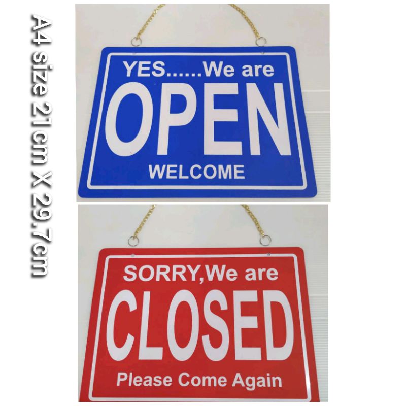 2 in 1 A4 Open Closed Door Sign Signage Double Sided Door Plate Yes We open now Welcome Sorry We are close Please Come