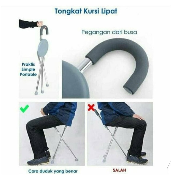 2 in 1 Folding Sitting Stick Elderly Chair Cane BEST RBO Umrah Prayer Stool ORI