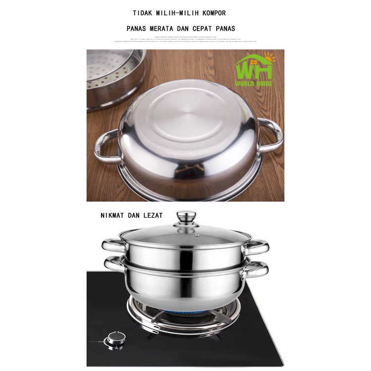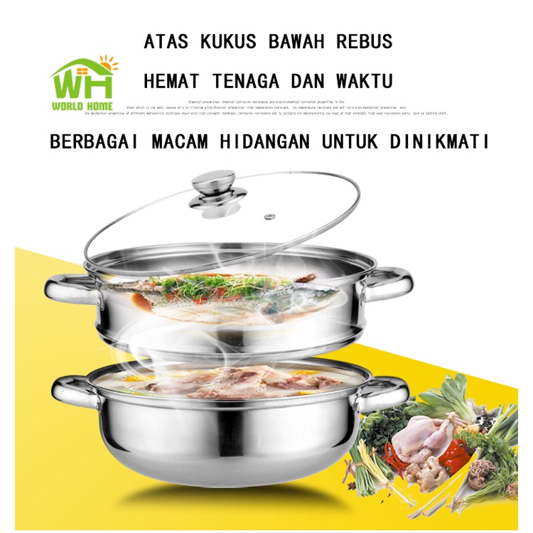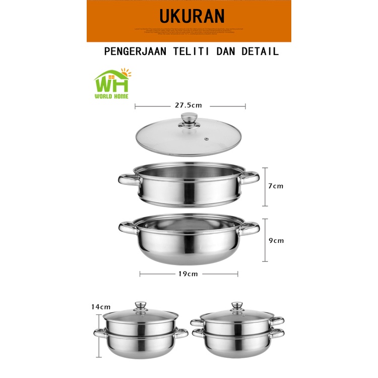 2-tier Stainless Steel Steamer Pot 27.5cm Stainless Steel 2-tier Steamer Pot-Stainless Steel Steamer