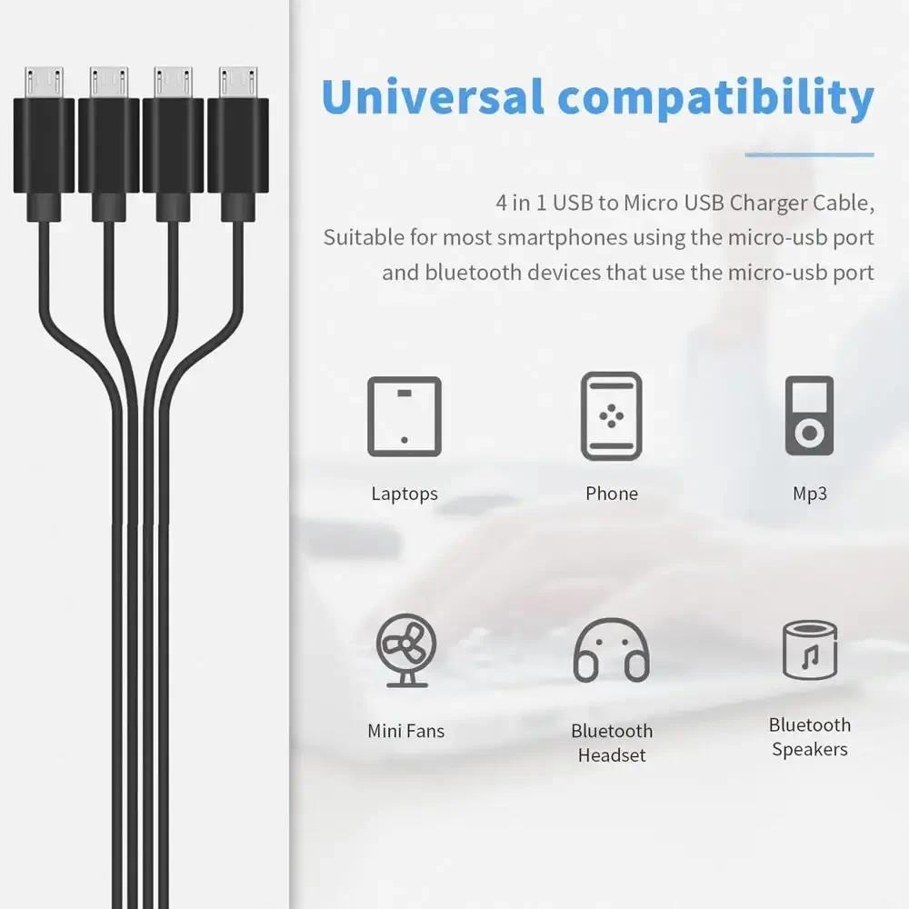 2 to 4 Micro USB Cable, Multi Micro USB Splitter Charging Cable, 5V USB A/Type C PD to Micro USB Cord, with 4 Micro Connectors