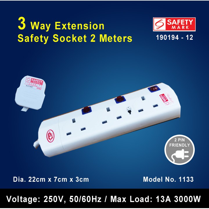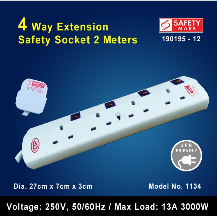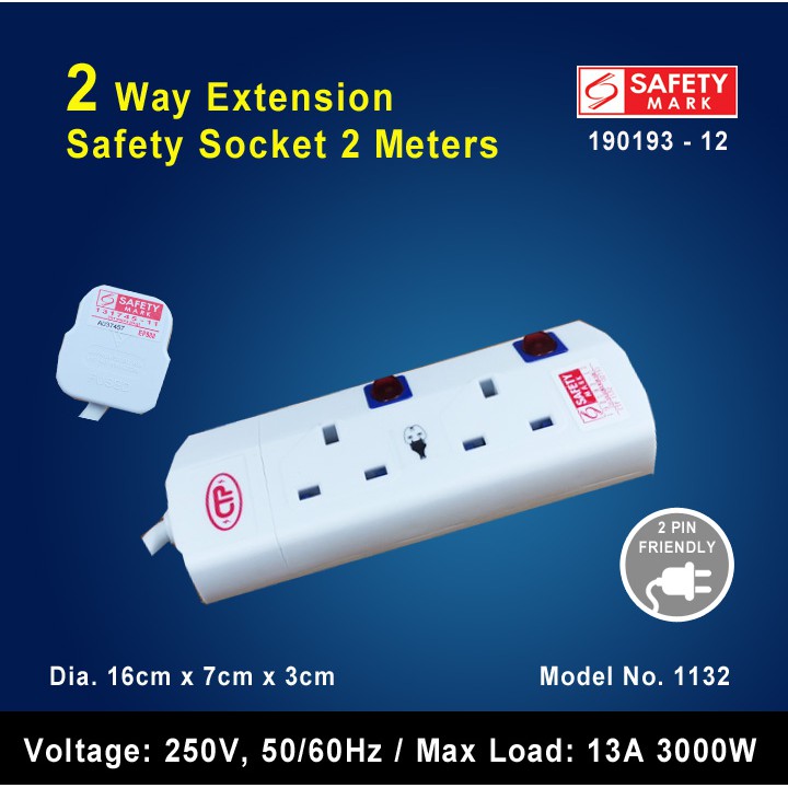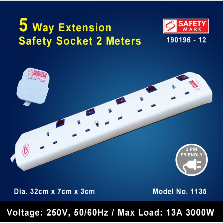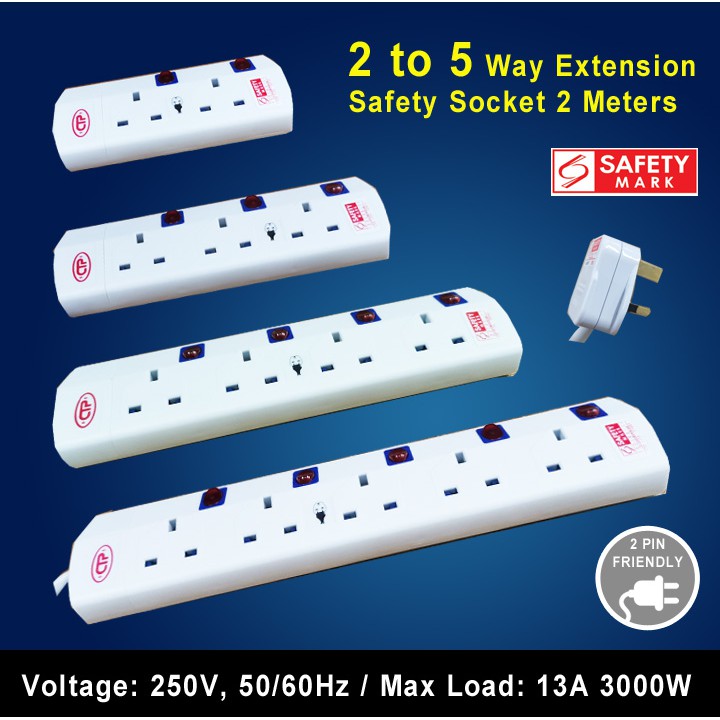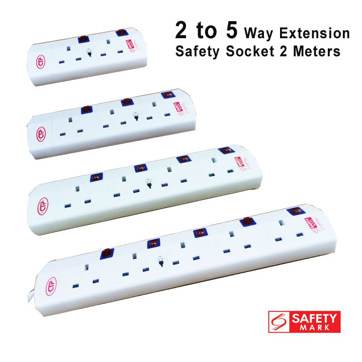 2 to 5 WAY SAFETY SOCKET WITH SAFETY MARK (2 METER)
