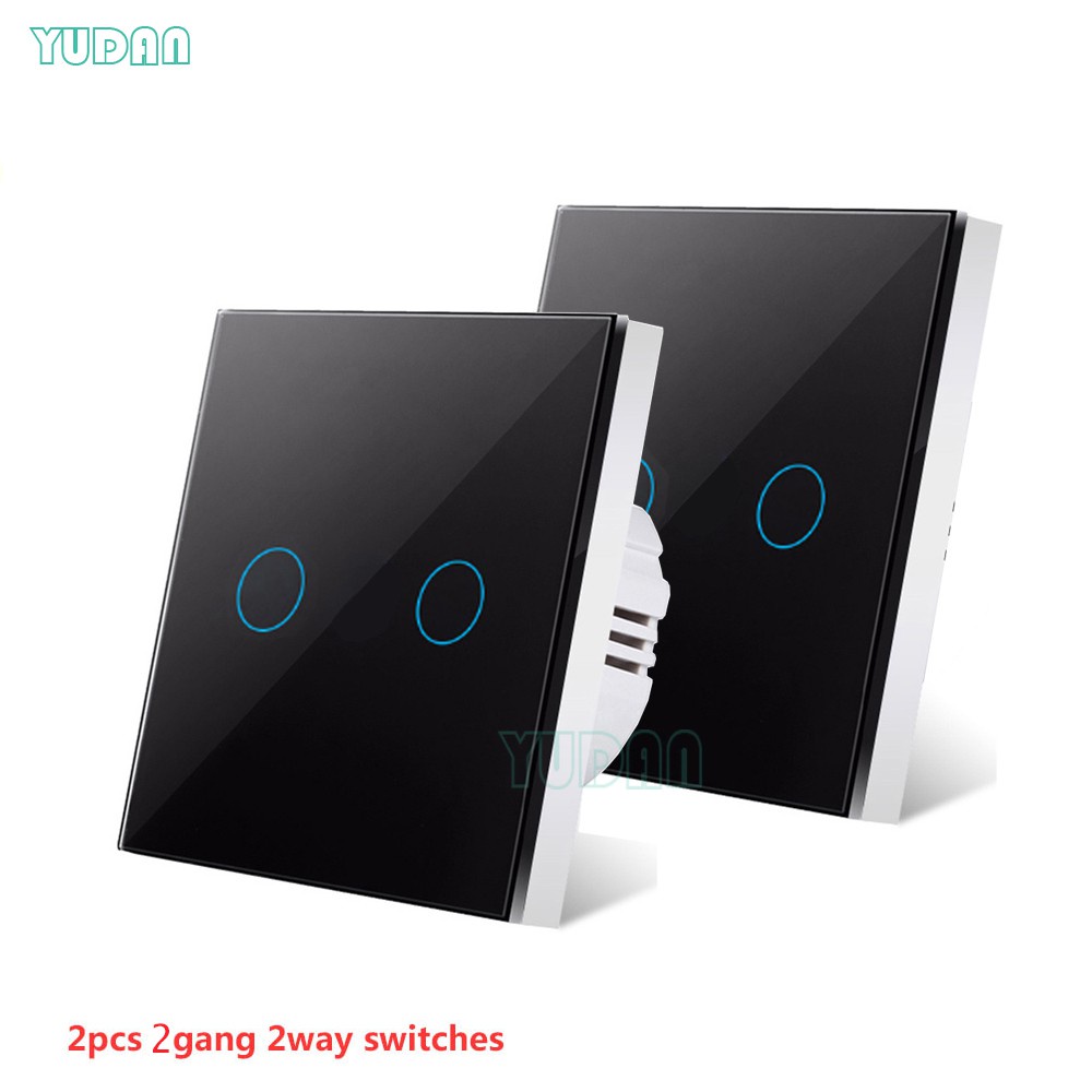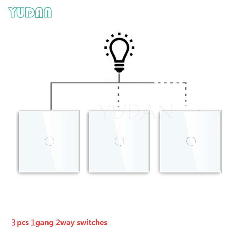 2 way switch (no need neutral wire) wall light touch switch 1 gang 2Way control wall light touch screen switch, 2 -Way switch crystal glass panel