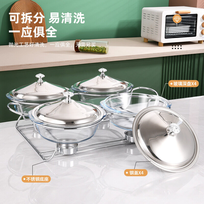 2.0L x 4 Chafing Dish Buffet Set Warming Tray with Lids Stainless Steel with 4 Oven Safe Glass Dishes Buffet Servers