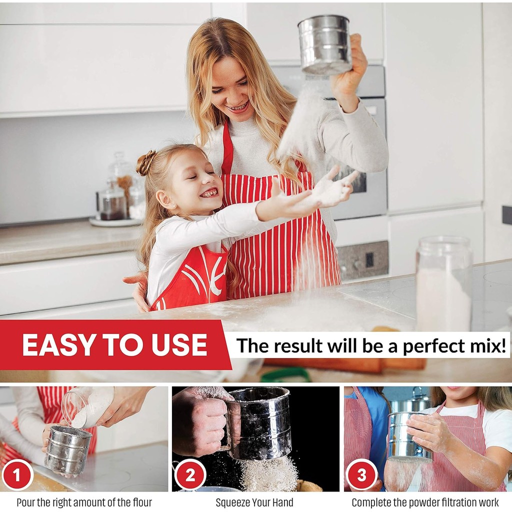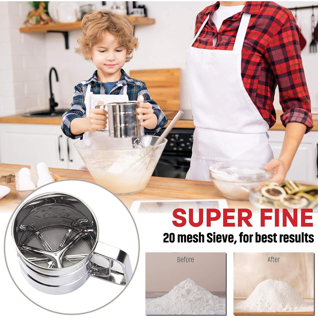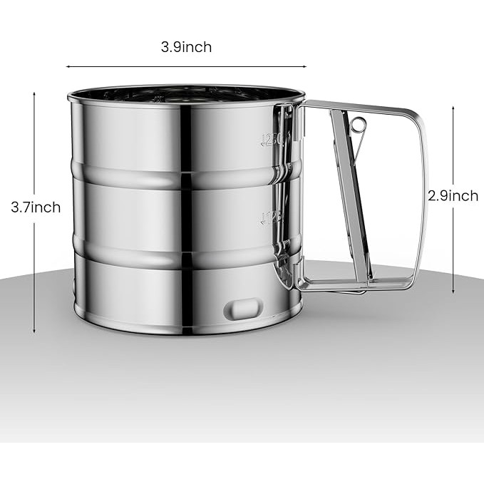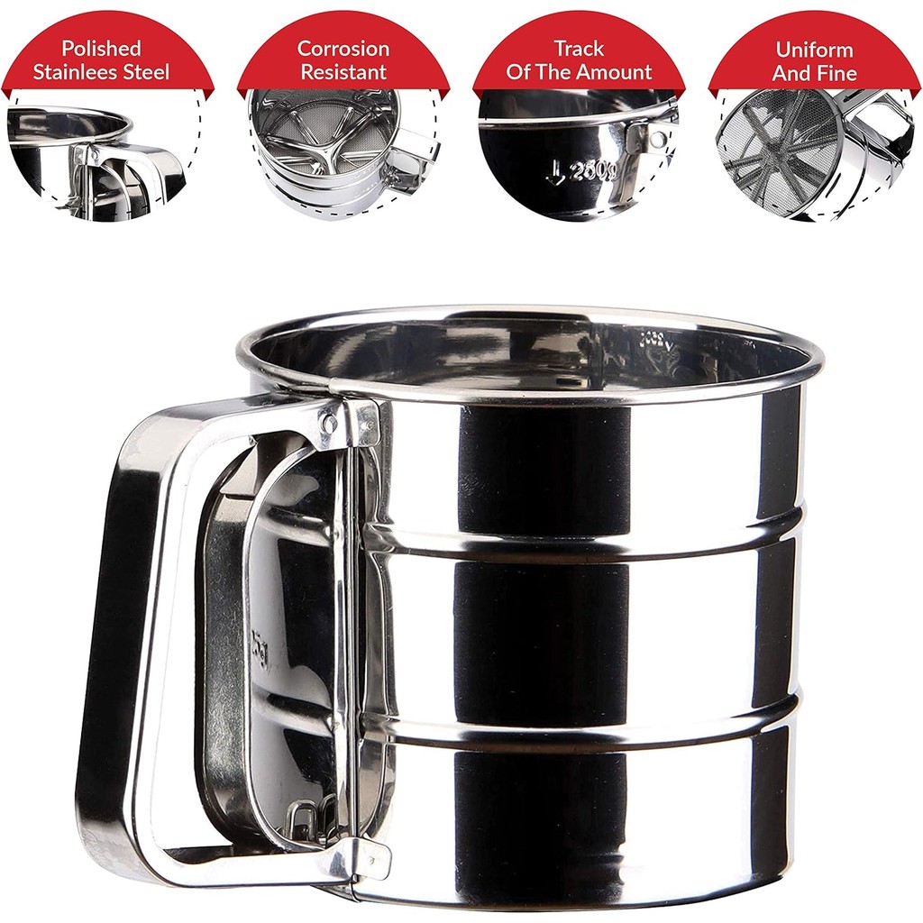 2.5 Cup Flour Sifter Stainless Steel Semi Automatic Baking Sieve Fine Mesh Sifter for Pastries Cakes Cookies