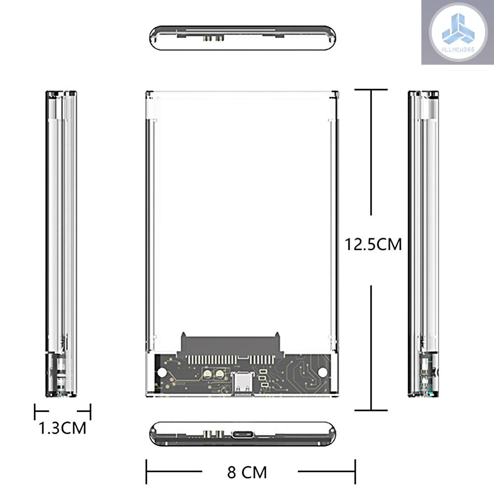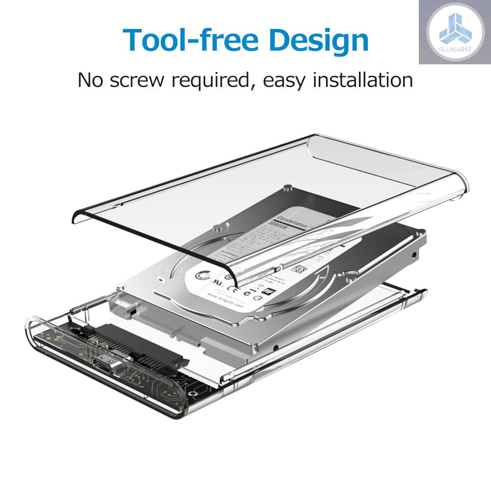 2.5 inch Hard Disk Case Type-C Transparent HDD Enclosure High-speed Transmission Easy Installation for 2.5 inch SATA HDD/SSD allnew1