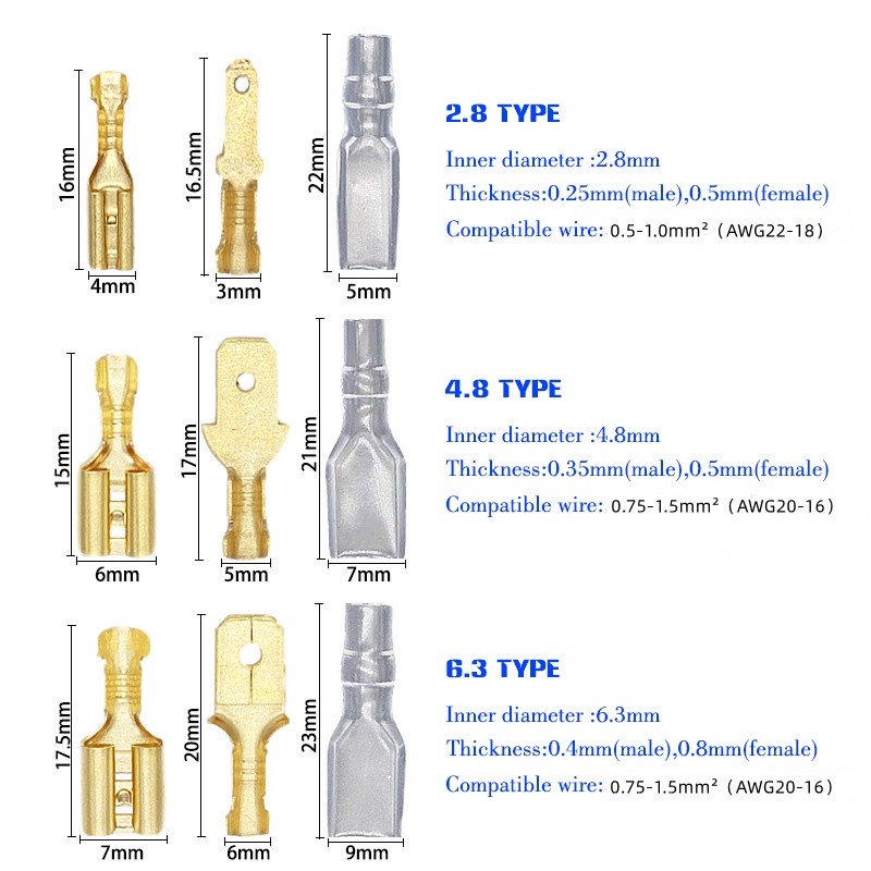 2.8/4.8/6.3mm Crimp Terminals Male and Female Wire Connector Electrical Wire Spade Connectors Insulated Sleeves Wire