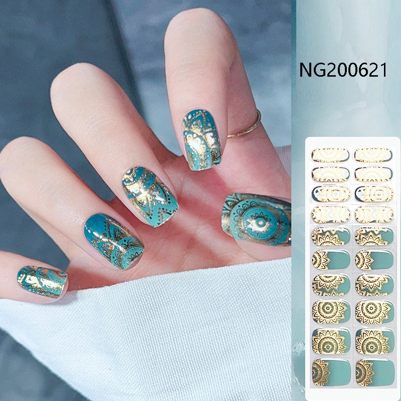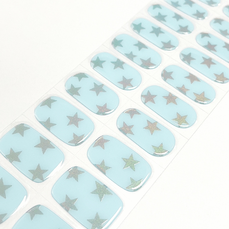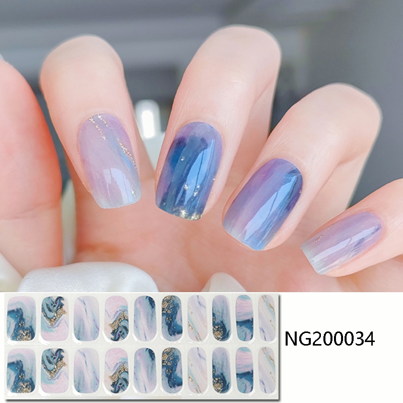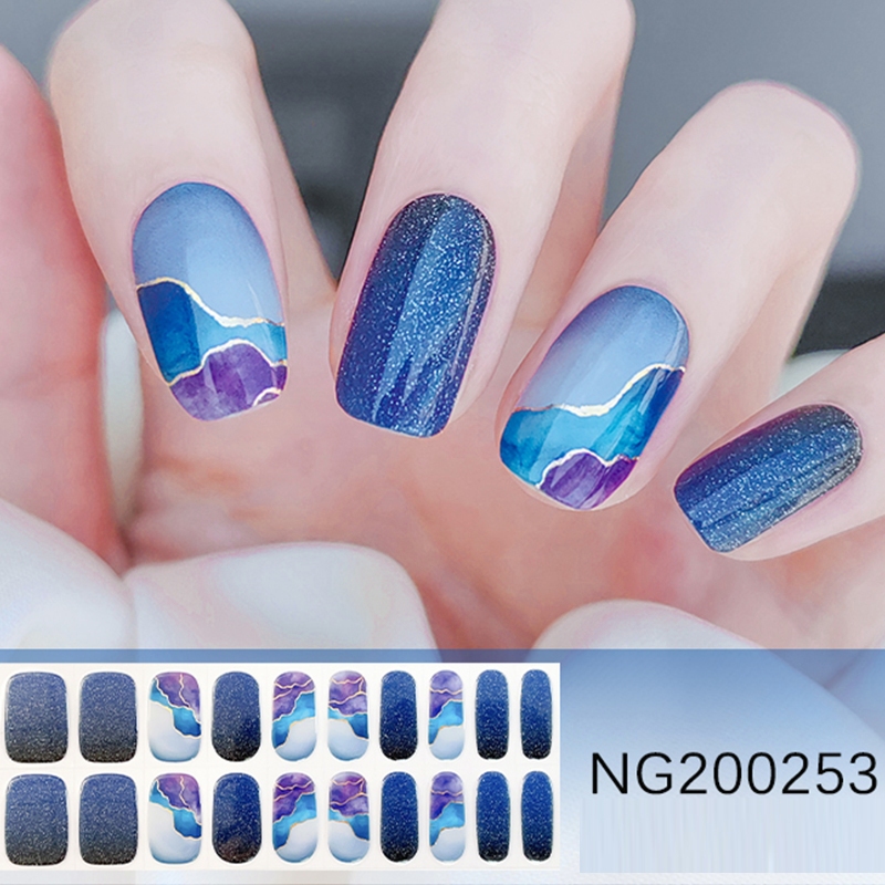 20 Finger UV Nail Stickers Second Generation Gel Nail Stickers Semi-Curing Phototherapy Stickers Blue Style Gel Curable Stickers Waterproof Glossy Long-Lasting Need Baking