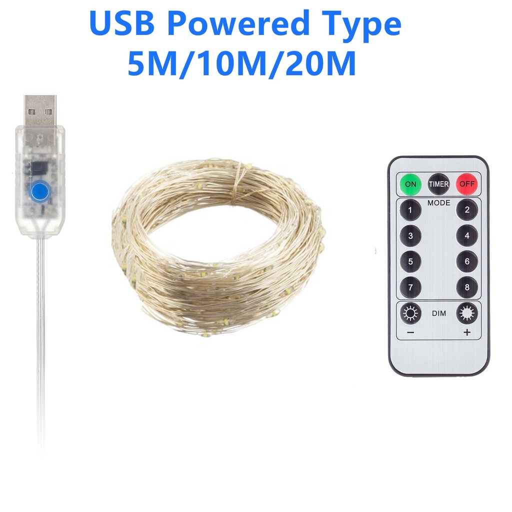 20 meters 200 LED fairy lights USB with 13 button remote control 8 flash modes waterproof silver wire copper wire flash string indoor bedroom light