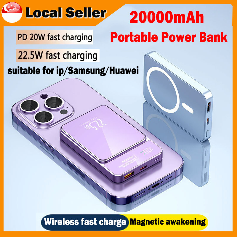 20000mAh Magnetic Power Bank 22.5W Fast Charging PD20W Wireless Powerbank Lightweight Portable For iphone Samsung Huawei