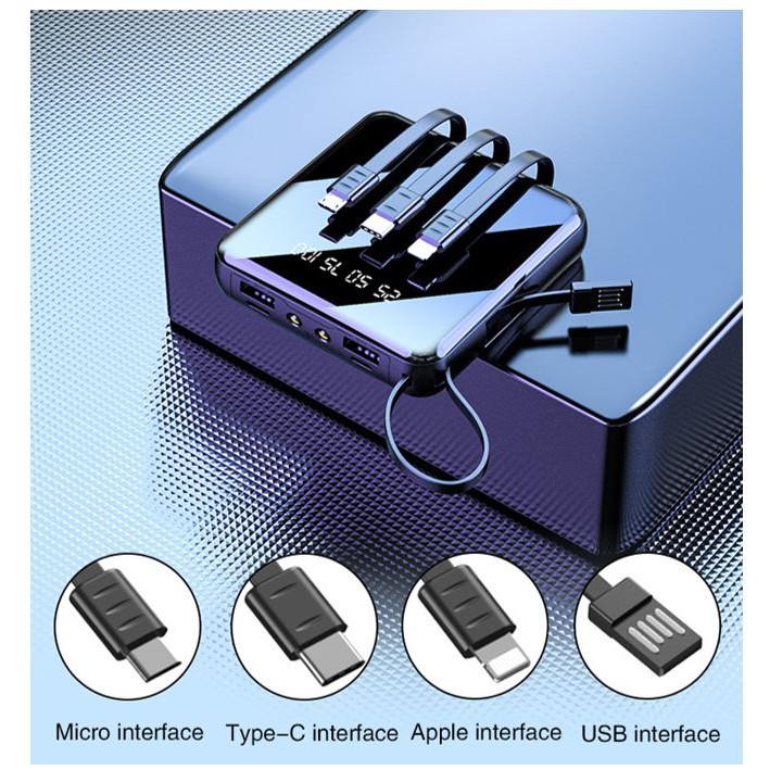 20000mAh Portable POWER BANK with cables inbuilt 5in1 Compact high-capacity Min PowerBank Fast Charging Flight Friendly