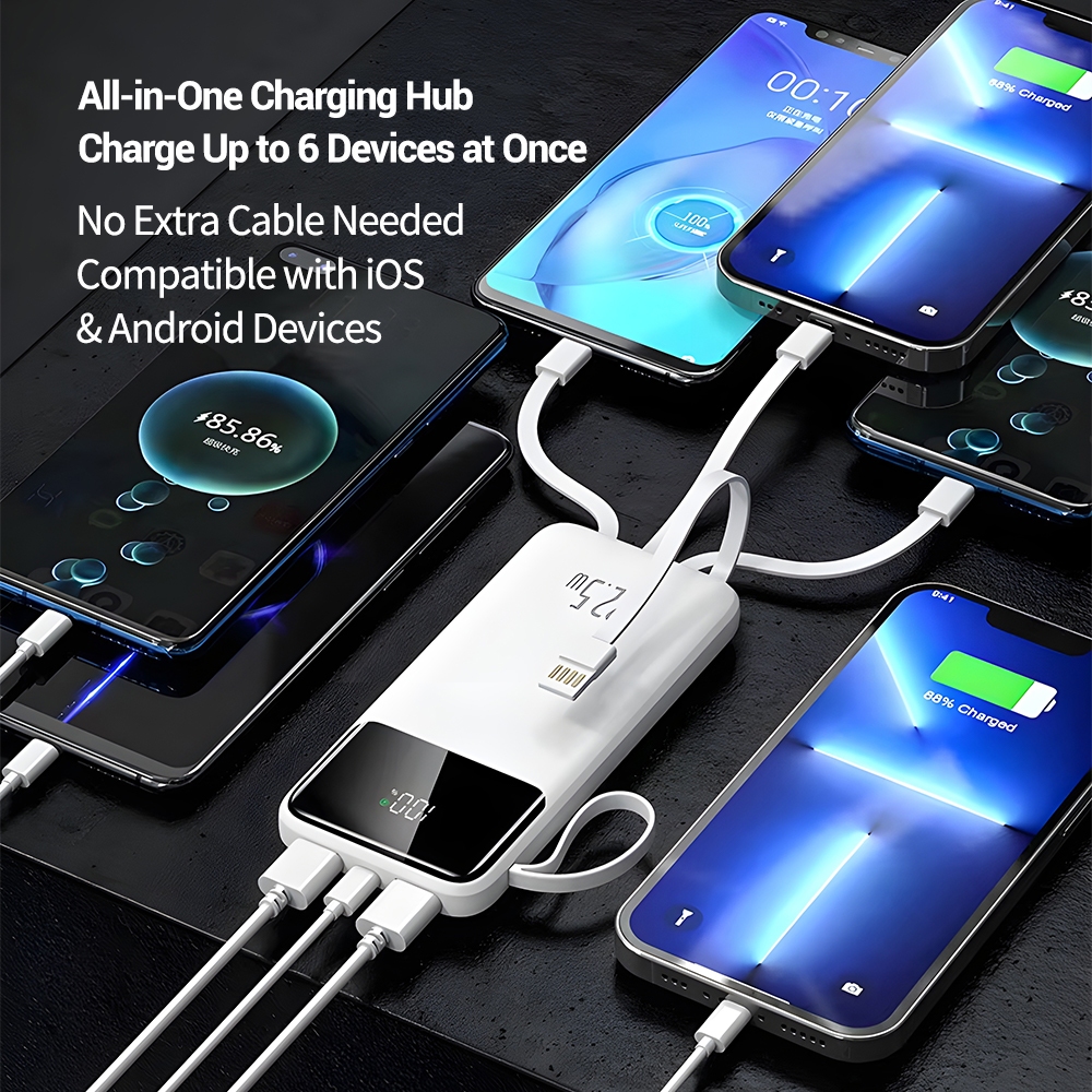 20000mAh Fast Charge PD 22.5W Powerbank Built In 4 Cables iPhone Samsung QC PD Charge Flashlight