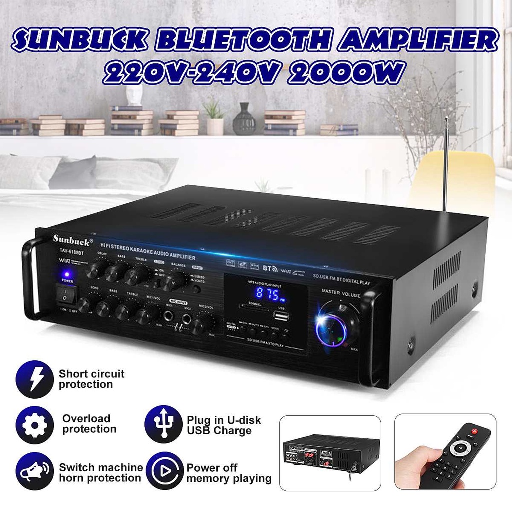 2000W Wireless Digital Audio Amplifier 4ohm bluetooth Stereo Karaoke Amplifier 2 MIC Input FM RC Home Theater Amplifier