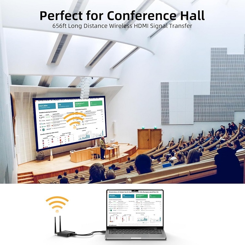 200M Wireless HDMI Extender Screen Share1080P WiFi Video Extender Support 1 to 4 Wireless Display for NVR Camera Laptop