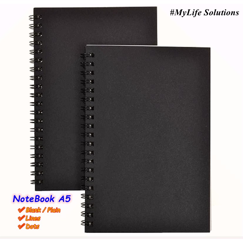 200Pgs Black Notebook A5 Diary Book Journal Book Wire O Ring Blank Lines Dotted Notebook Buku Tulis Buku Nota Buku Diary