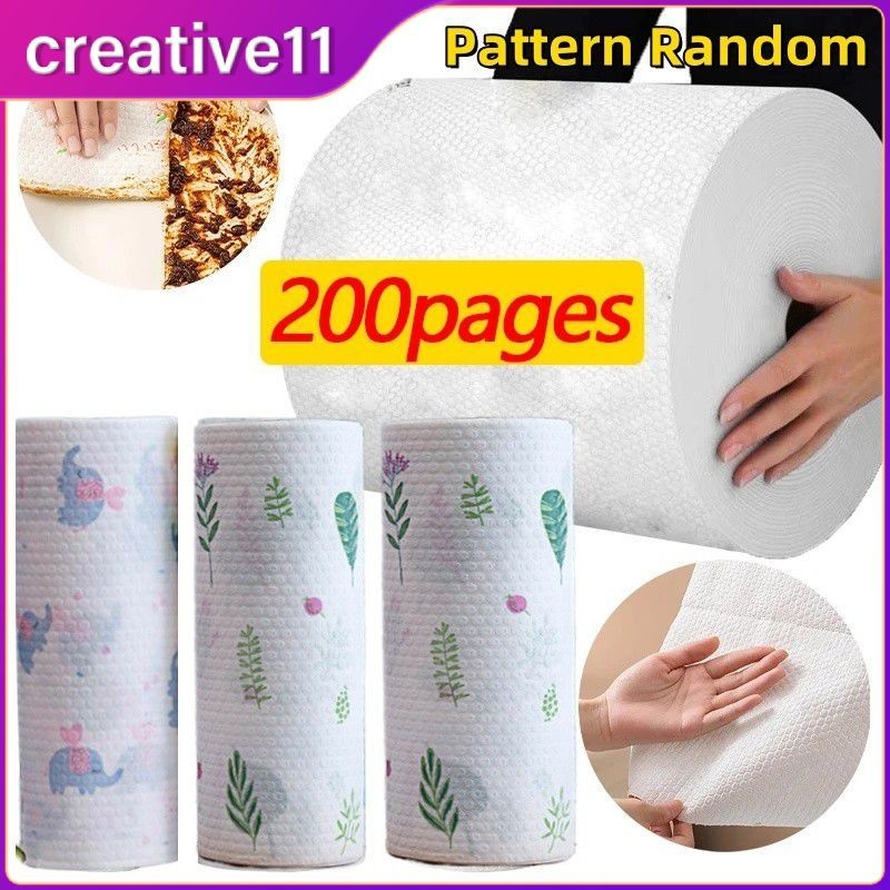 200pages/roll Disposable Rags Home Kitchen Non-woven Roller Cleaning Cloths Lazy Absorbent Towels Cleaner Wipes creative11