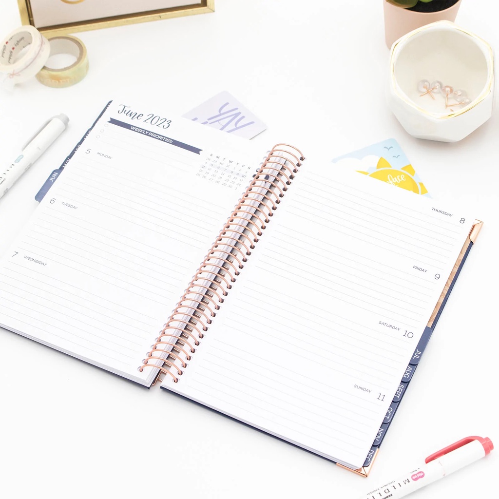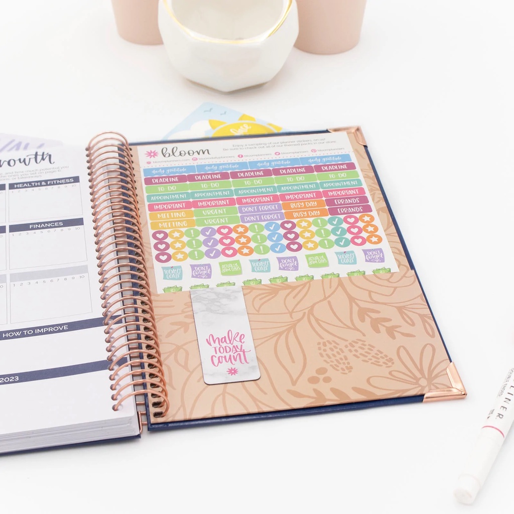 2023 Hard Cover Planner, Navy Embroidery Planner, Bloom Daily Hard Cover Planner 12 months, Jan 2023 - Dec 2023