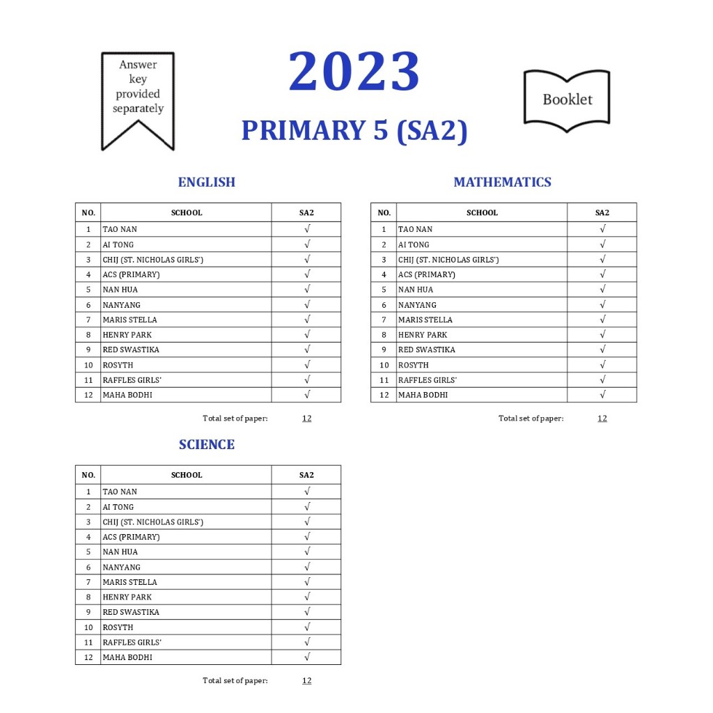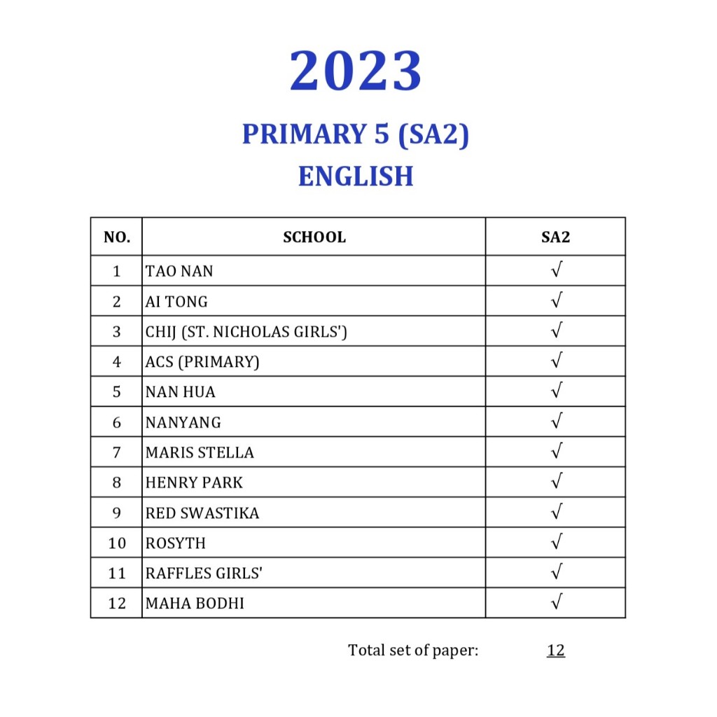 2023 P5 SA2 Top Schools Exam Papers Primary 5 English/Math/Science/Chinese/Higher Chinese