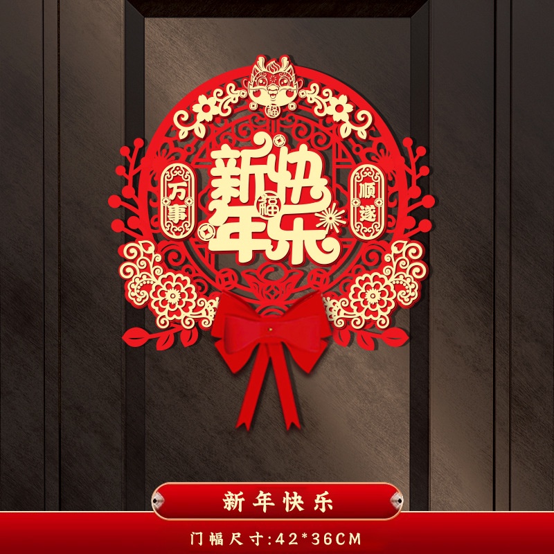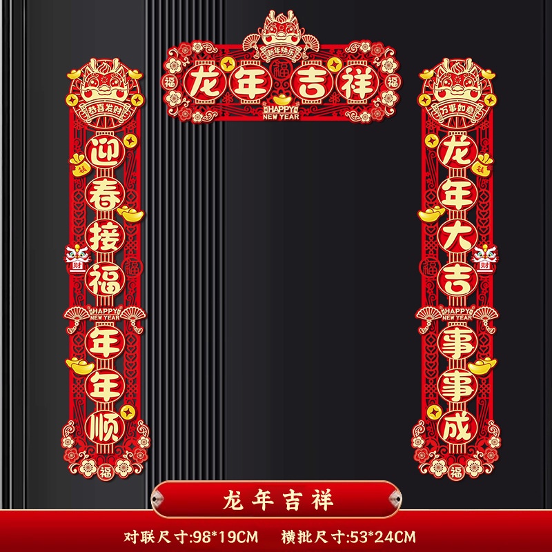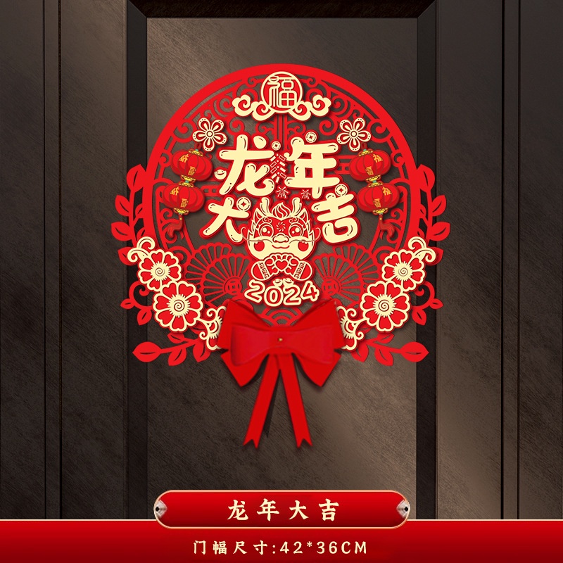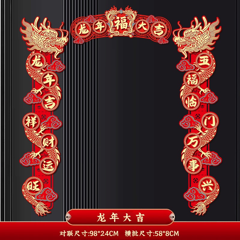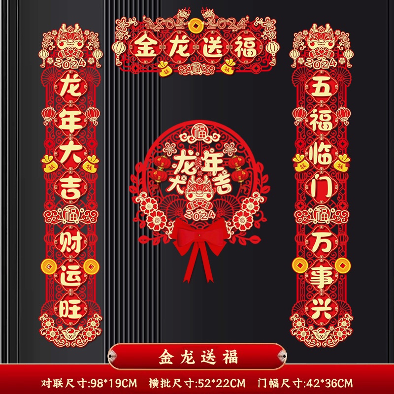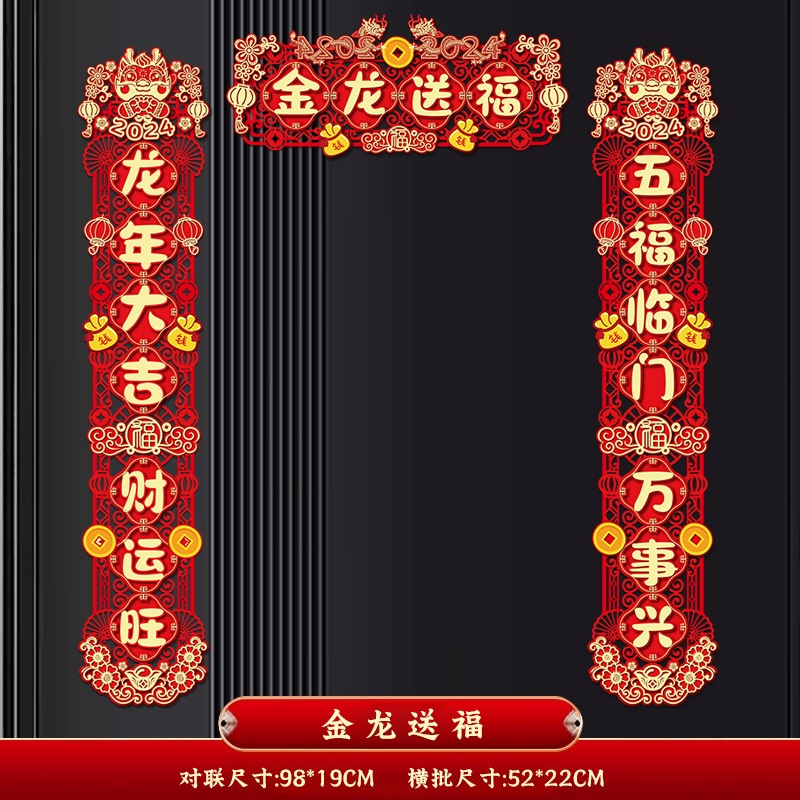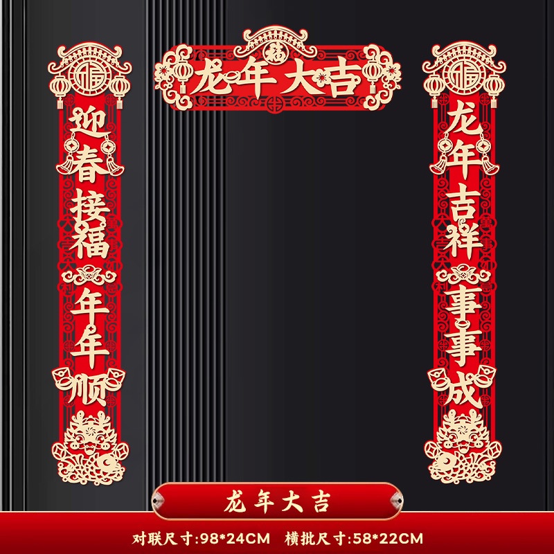2024 CNY Dragon Decorative Couplets 3D Door Pendant Flocking Couplet Hollow Carving 3D Design Door Stickers Spring Festival Couplets New Year Decorations