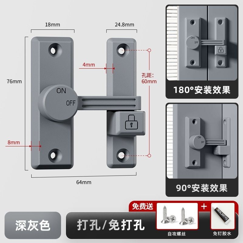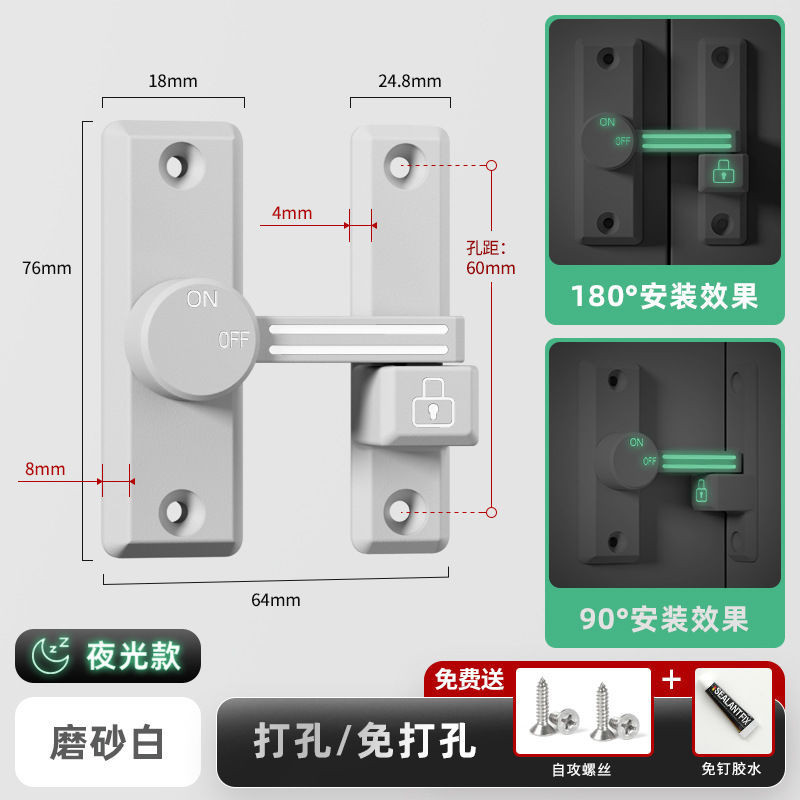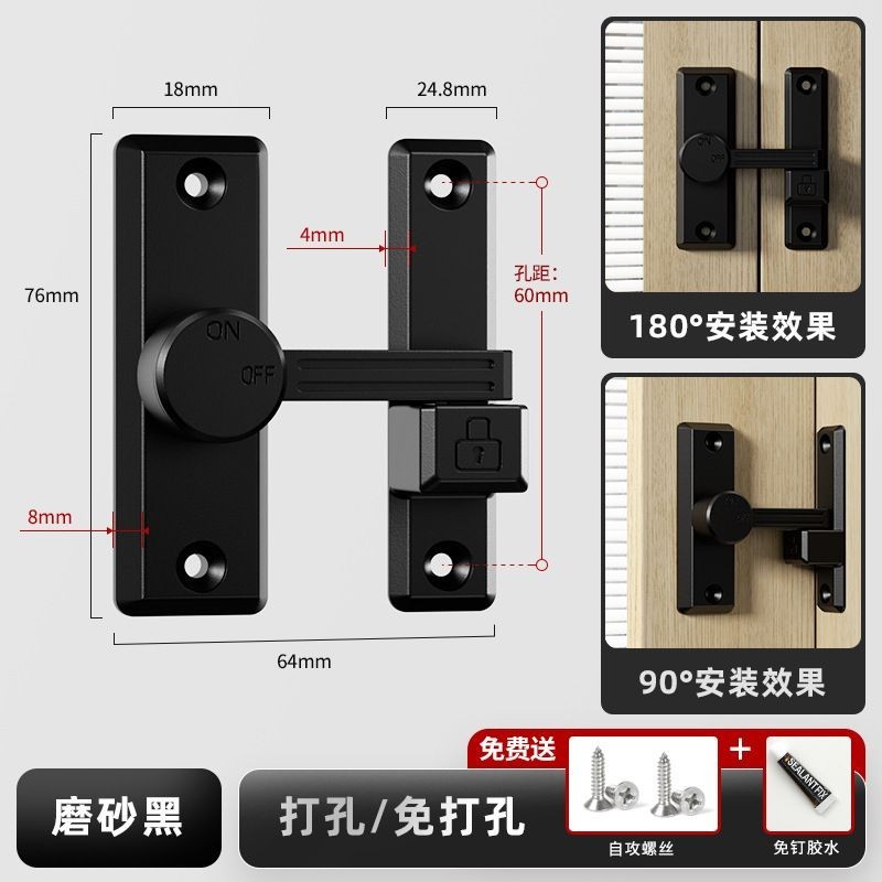2024 New French 90 degree door lock latch Indoor bathroom sliding door latch free of punching