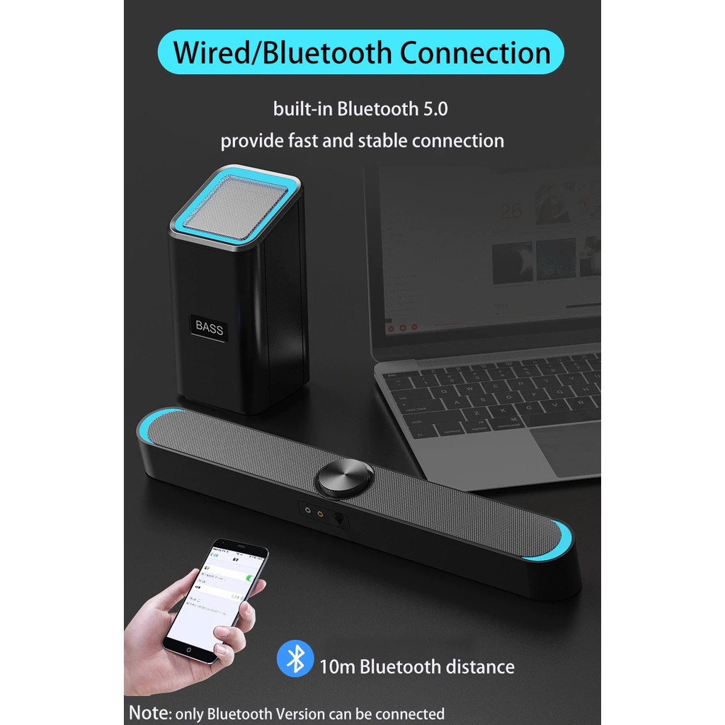 2024 PC Sound Bar USB Wired and Wireless Bluetooth Speaker Home Theater Surround Extra Bass PC Speaker