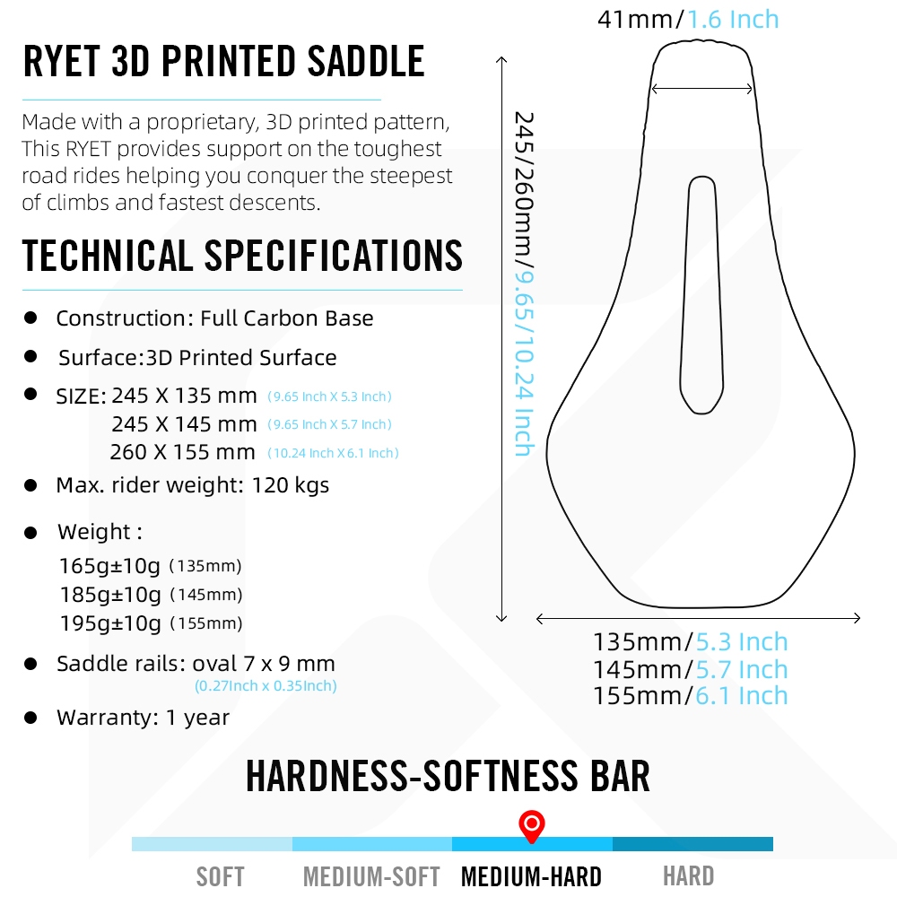 Ready Stock! RYET 3D Printed Full Carbon Bike Saddle 165-200g Lightweight, Leaf Spring Tech for Comfort, 245mm & 260mm Length Width Options for MTB Gravel Road Bike