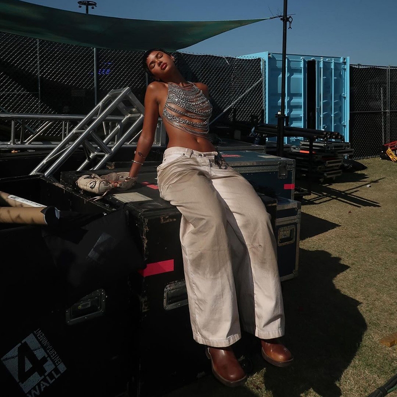 2024 Summer New Fashionable Personalized Metal Chain Hanging Neck Bareback Sexy Hollow Small Tank Top