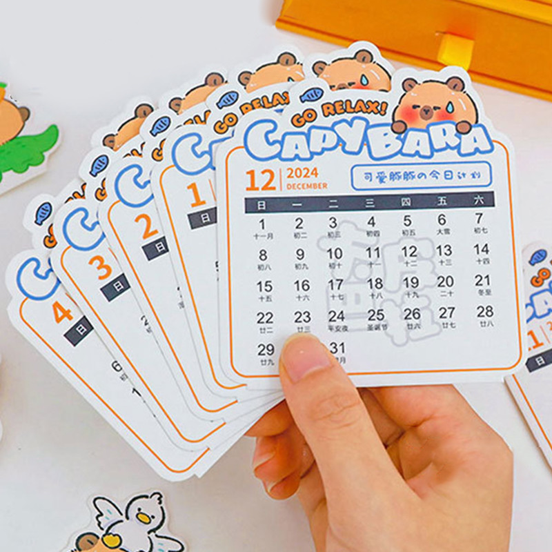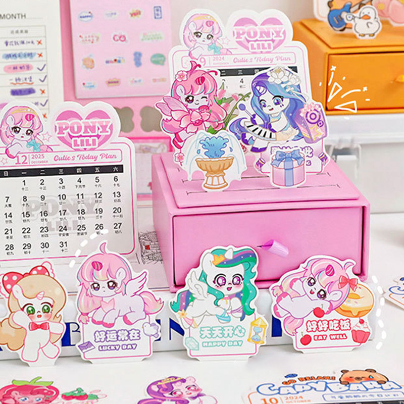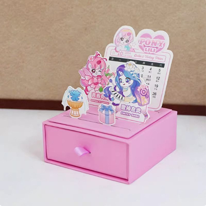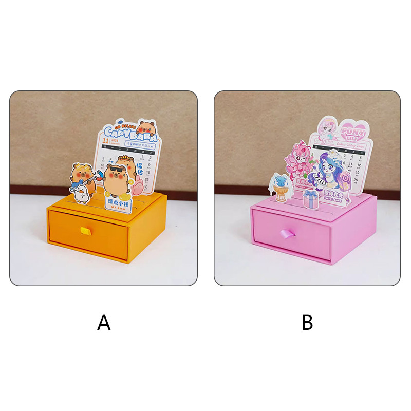 2025 Calendar Cartoon Drawer Style Mini Desk Calendar with DIY Cards School Student Desktop Planner Calendar Box Calendar