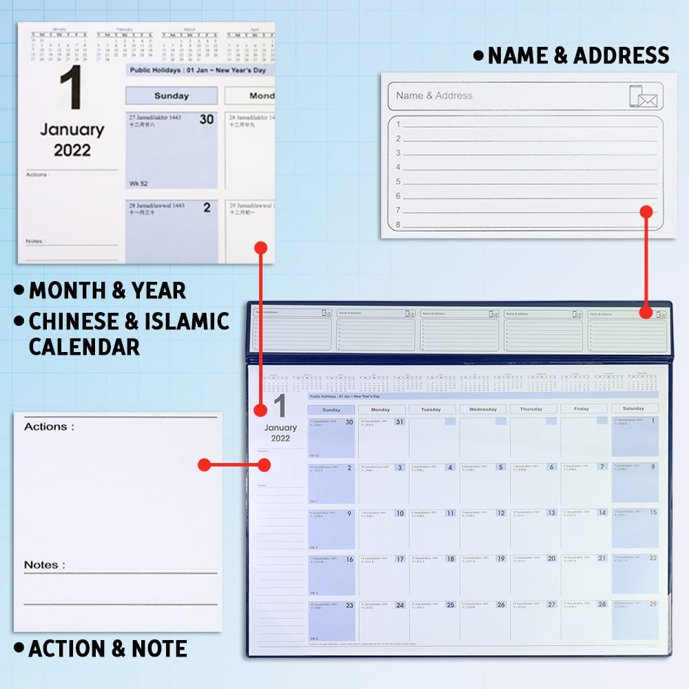 2026 Table Planner PVC Cover Desktop Planner 12 sheets 52.5x43 cm