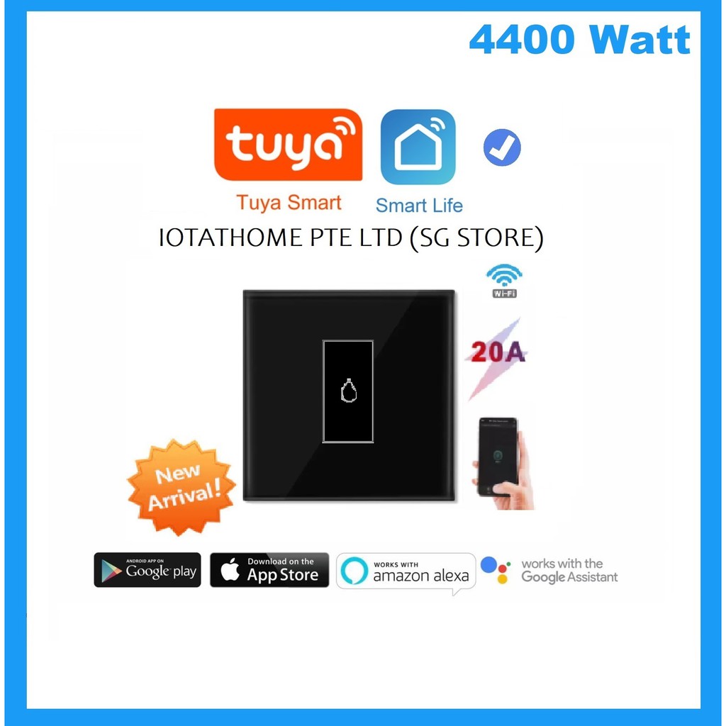 20A Smart WiFi Switch for Water Heater, Cooker Hood, Smart Home Automation, 1G 1W Switch,20A Current
