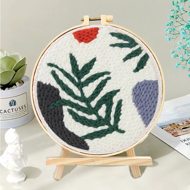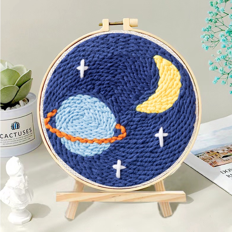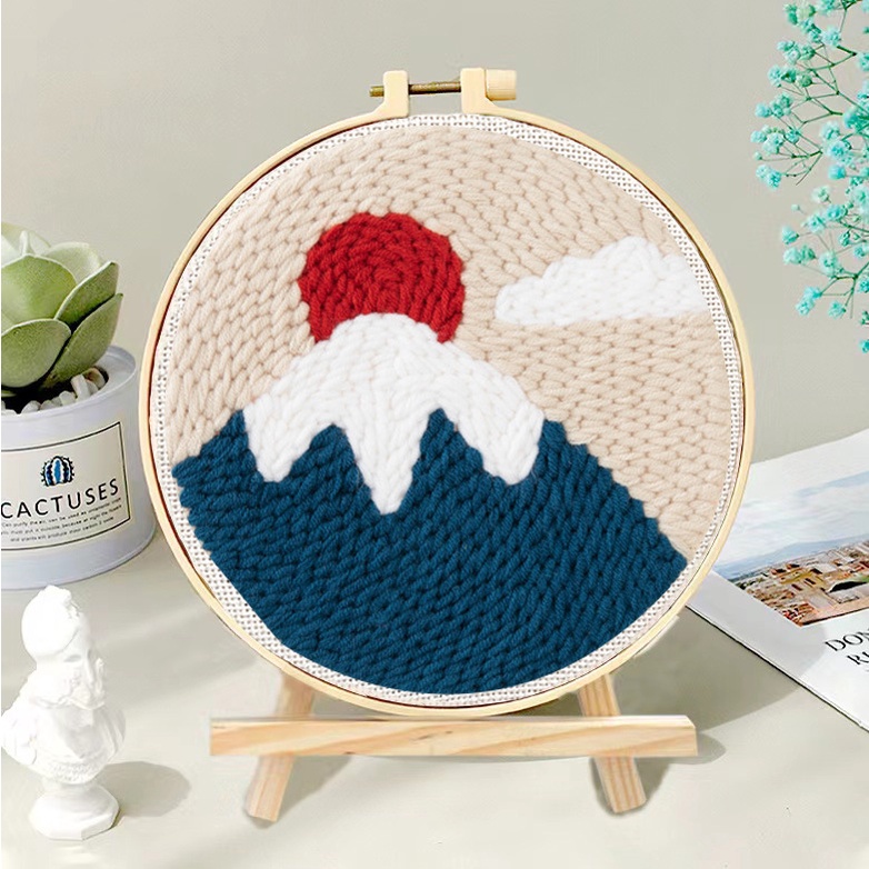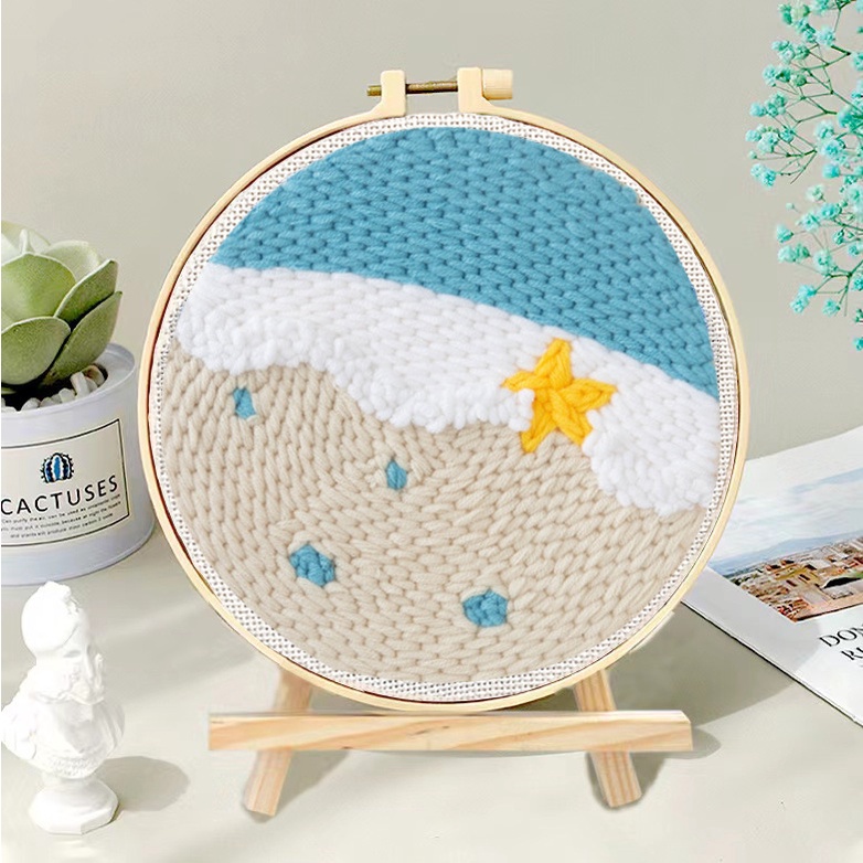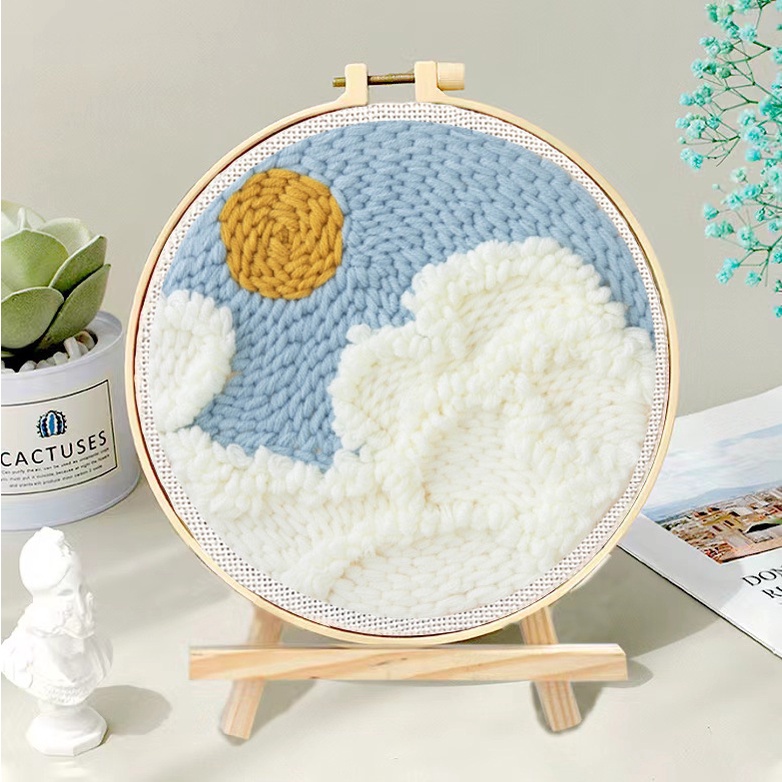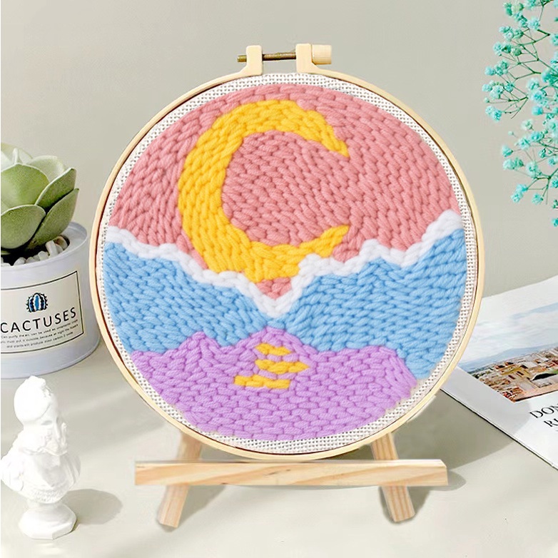 20Cm Punch Embroidery Starter Kits Children Hand Embroidery Kit Beginners Diy Needlework Wool Punch Needle Poke Embroidery Kit
