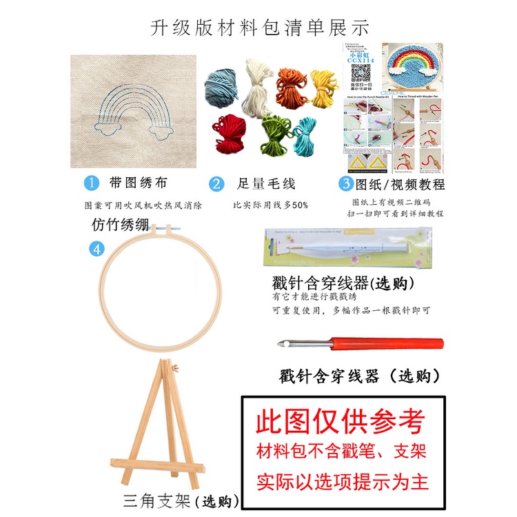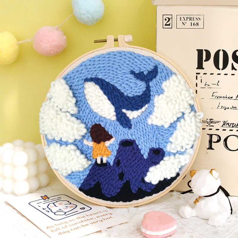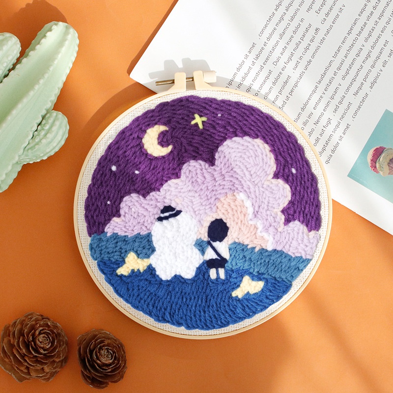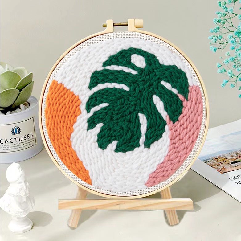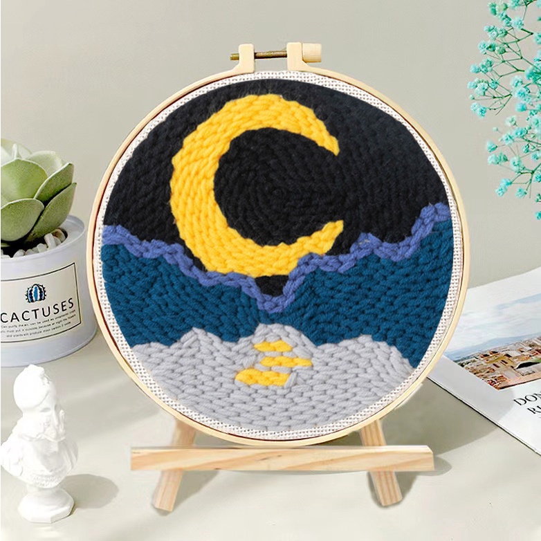 20Cm Punch Embroidery Starter Kits Children Hand Embroidery Kit Beginners Diy Needlework Wool Punch Needle Poke Embroidery Kit