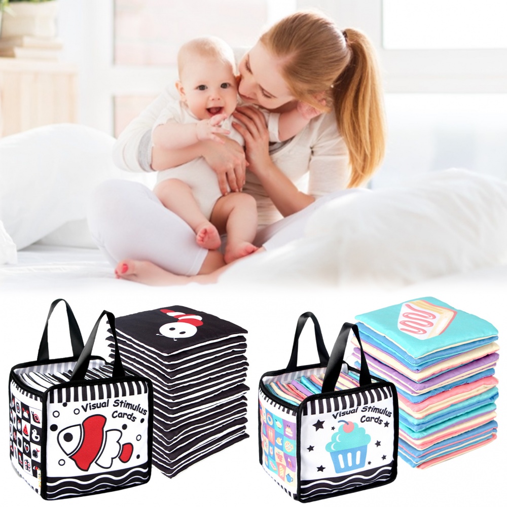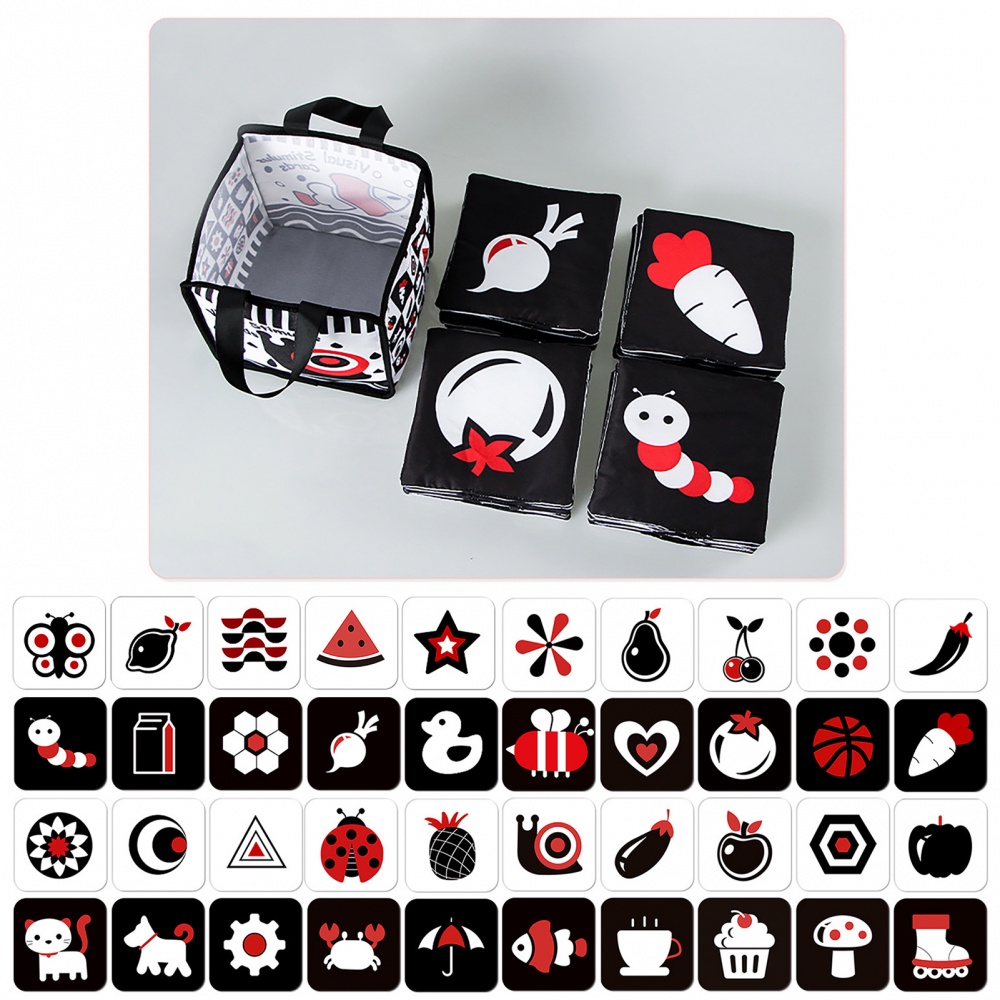 20PCS Baby Visual Stimulation Card Double-sided Black & White High Contrast Soft Flash Cards with Storage Bag Newborn Baby Sensory Toys