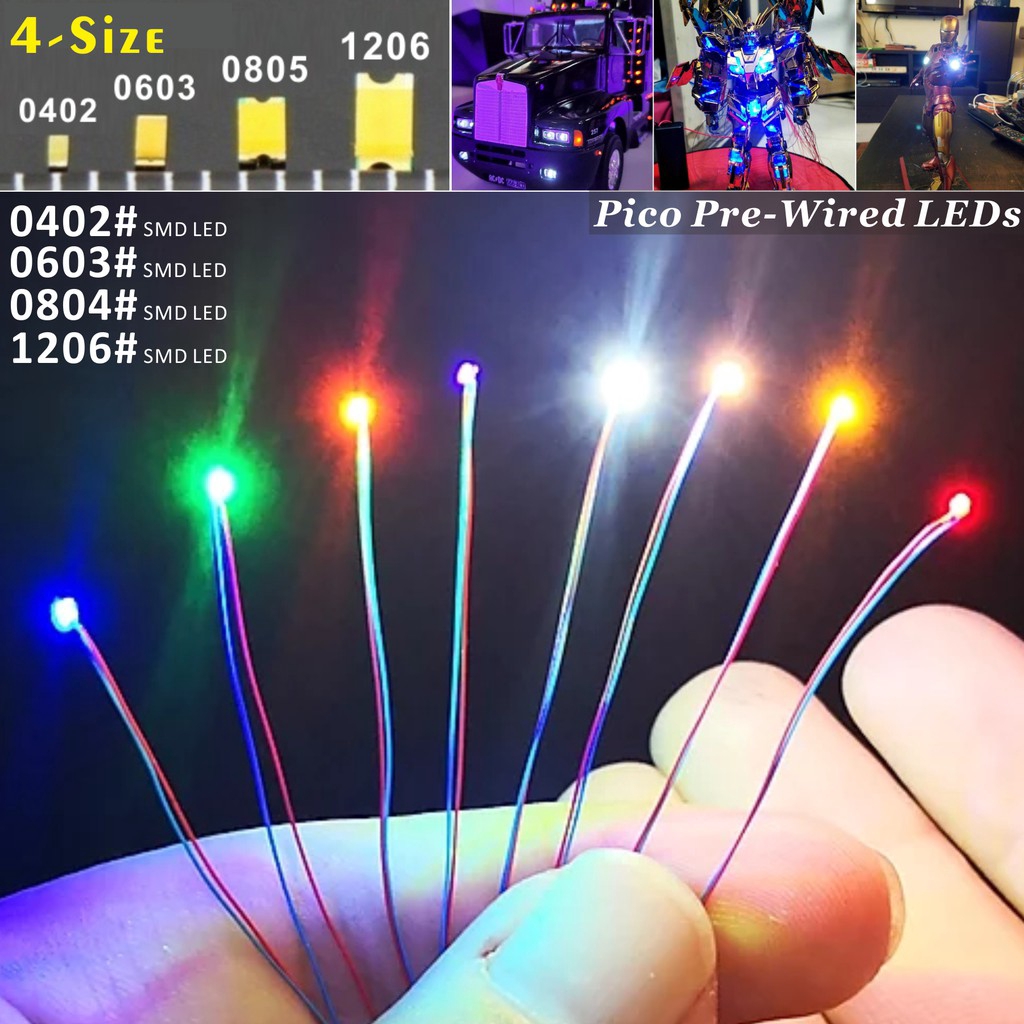 20PCS Pre-wired 3V 0402# 0603# 0805# 1206# SMD LEDs Pre-soldered Wire Leads for Hobby Model Kit/Gundam Lighting