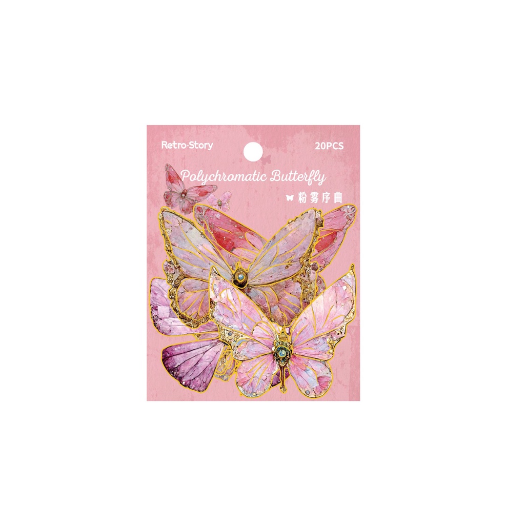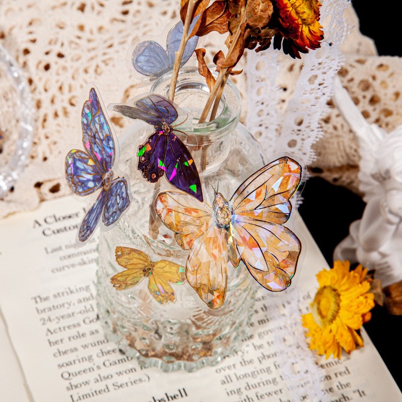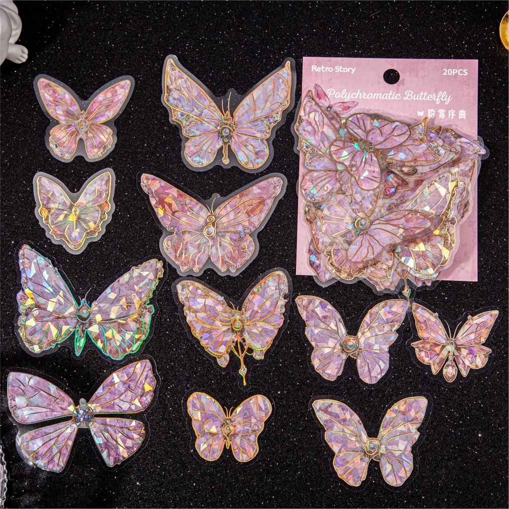 20Pcs Holographic Butterfly Stickers Resin Transparent Glitter Shiny Sparkly Butterflies Decals Decorations For Scrapbook craft