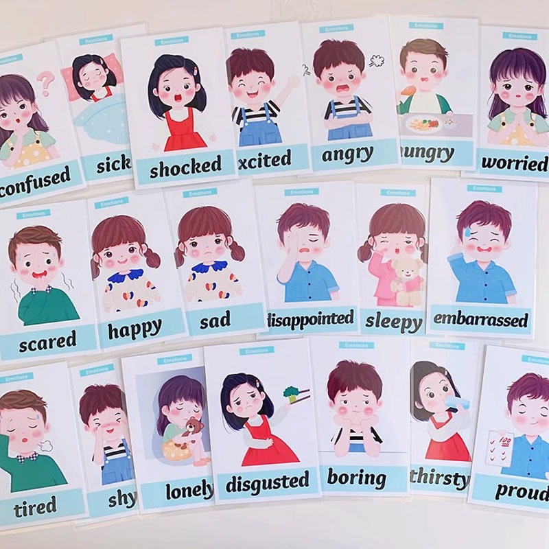 20pcs/set Cute Emotions Flash Cards Cartoon Picture Autism Kids Training Flash Cards Children Early Learning Educational Toy Memory Game Cards