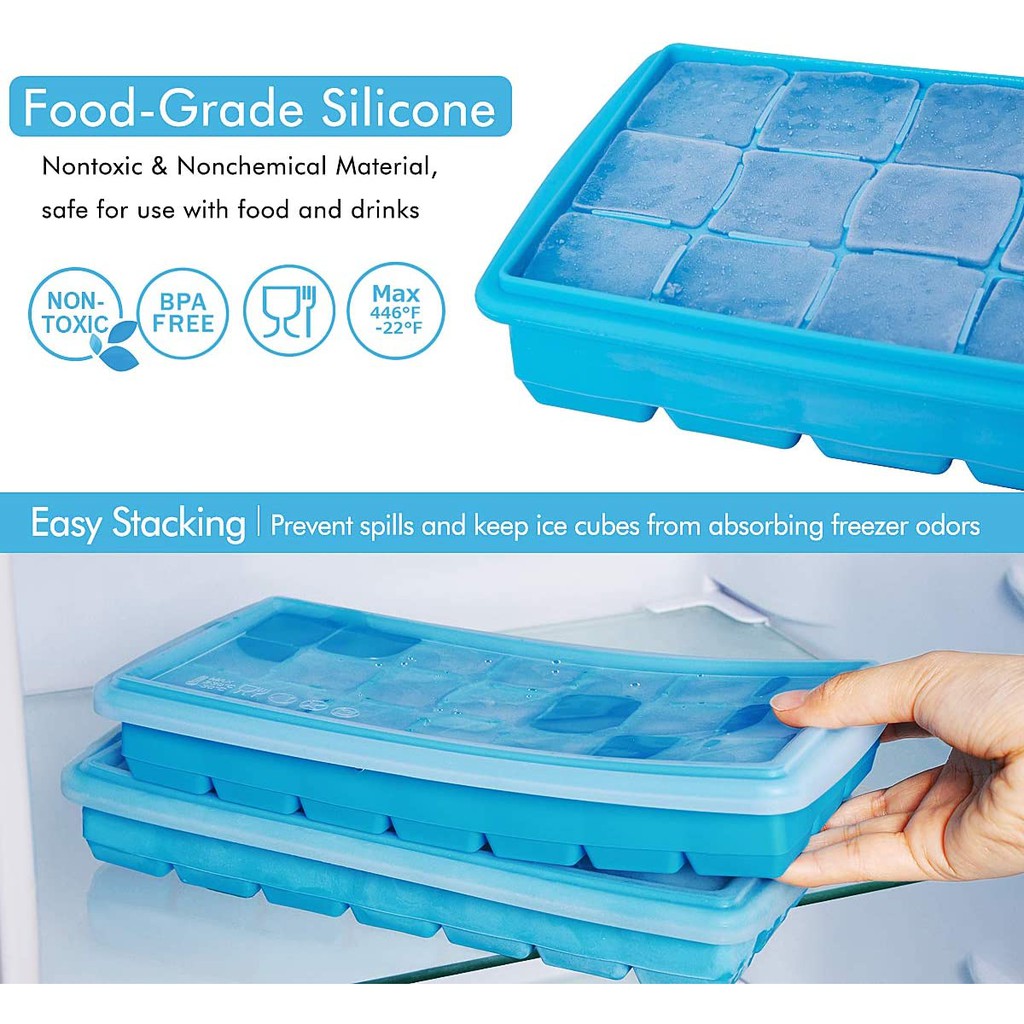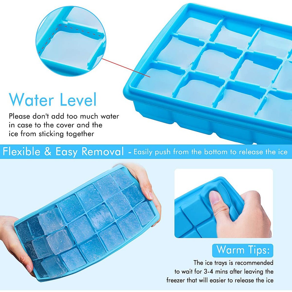 21 Cavity Silicone Ice Cube Eco Friendly Tray with Plastic Lid Ice Cube Trays Silicone Ice Tray with Removable Lids Easy