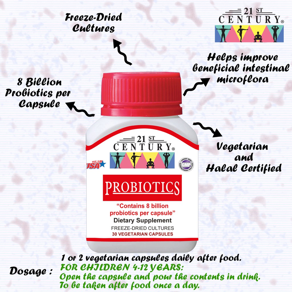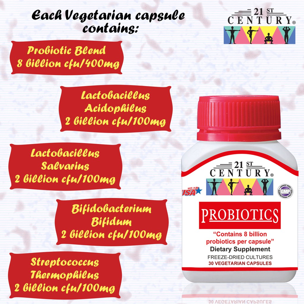 21st Century Probiotics, 8 Billion Cfus 30 or 100 Vegecapsules (Contains Dairy)