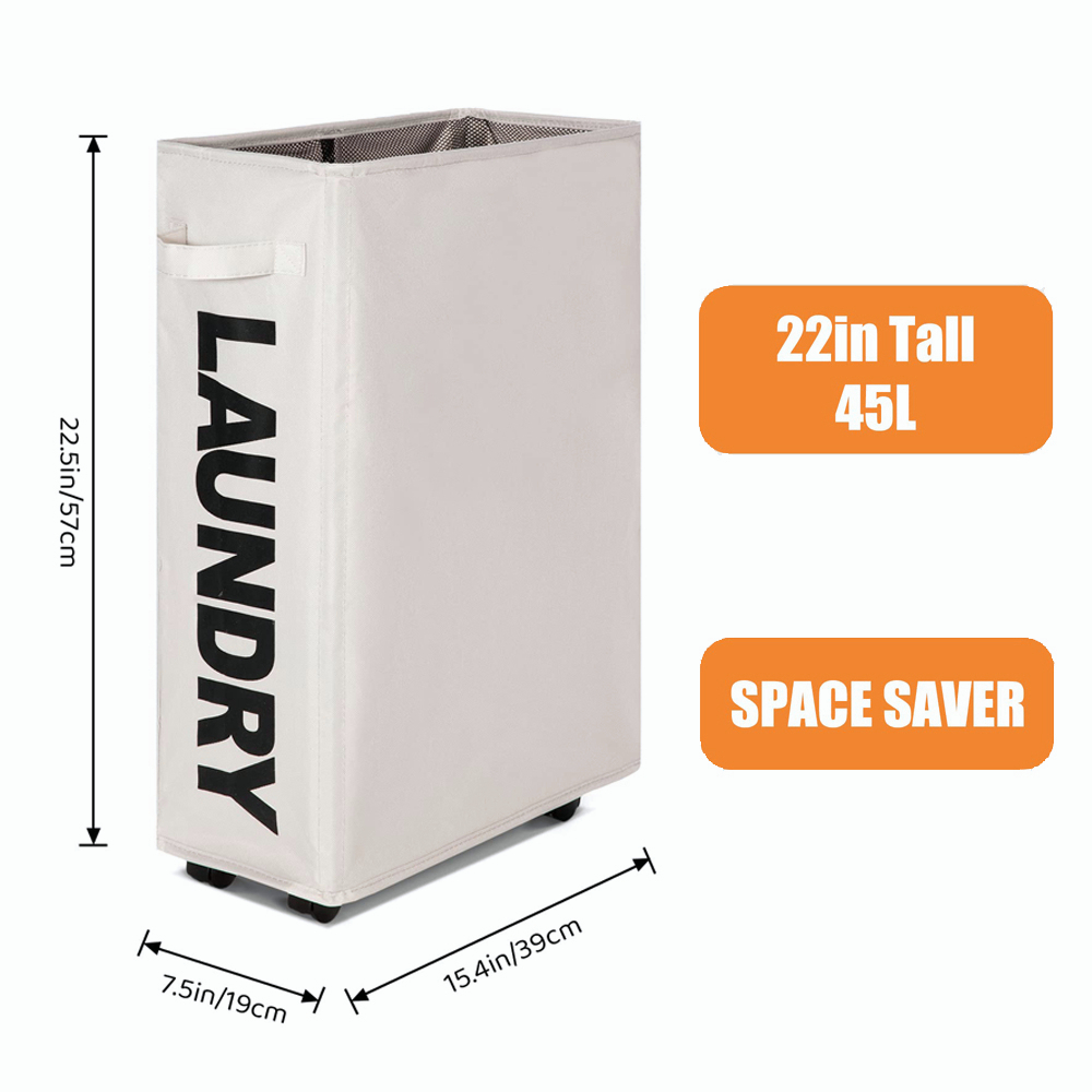 22" Rolling Laundry Baskets on Wheels, Collapsible Slim Laundry Hamper Canvas Flexible Laundry Bag Storage Bin Organizer