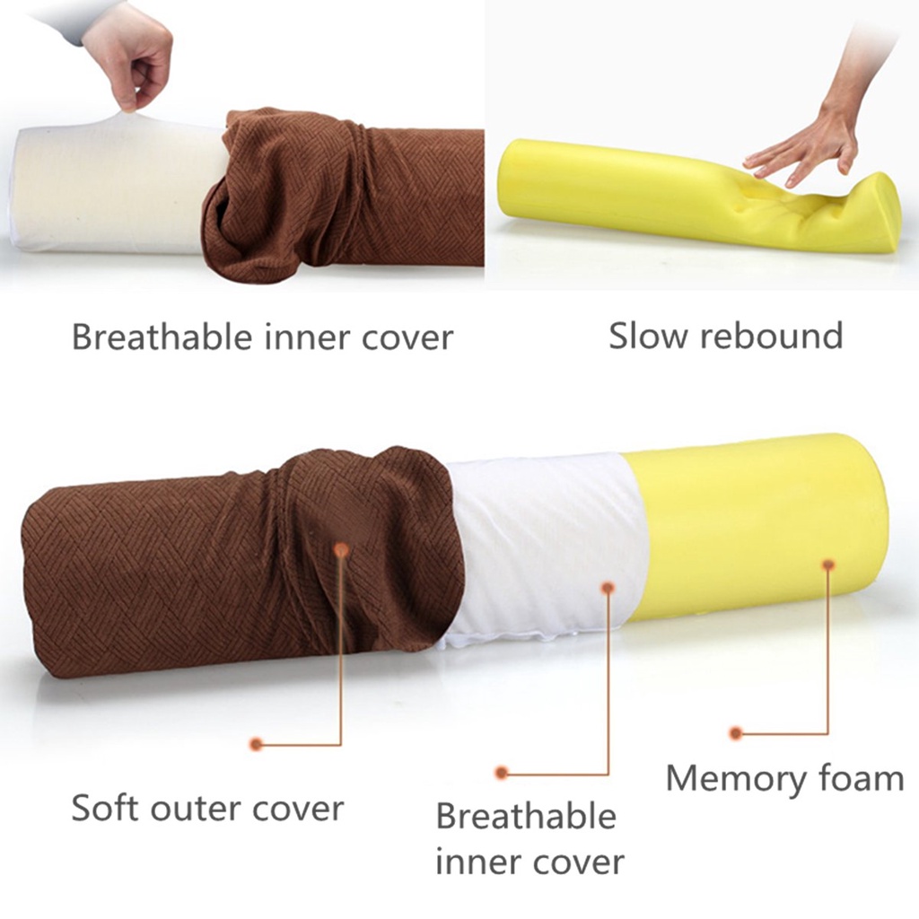 23'' Round Cervical Pillow Roll Memory Foam Sleeping Positioning Roll Neck Lumbar Bolster with Washable Cover