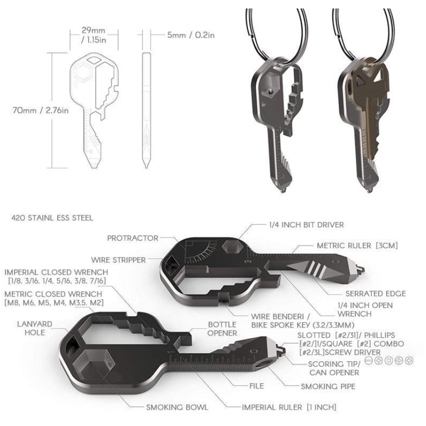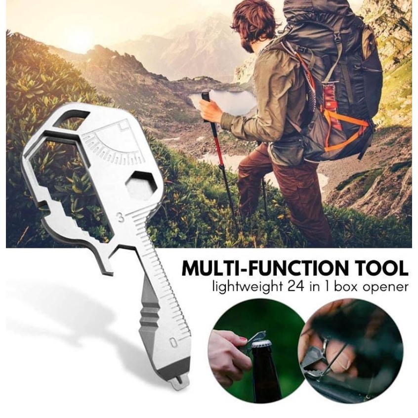 24 In 1 Multi-function Tool Stainless Steel Mini Multi-tool Key Shaped Pocket Tool Portable Universal Tool
