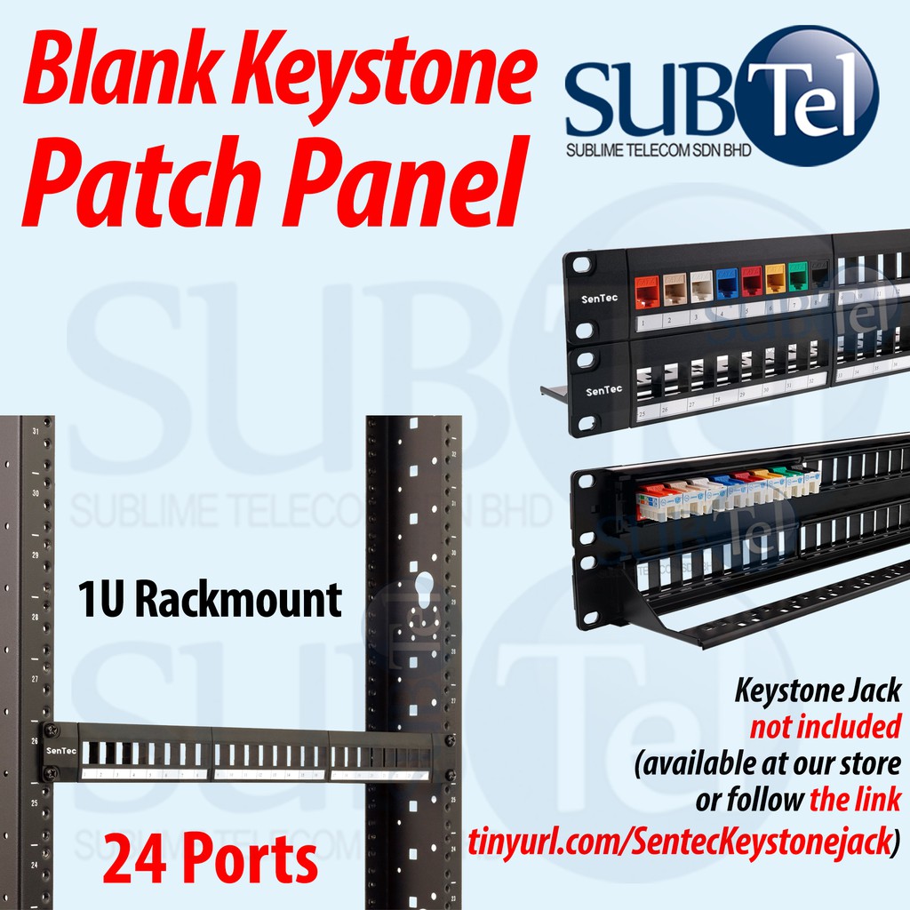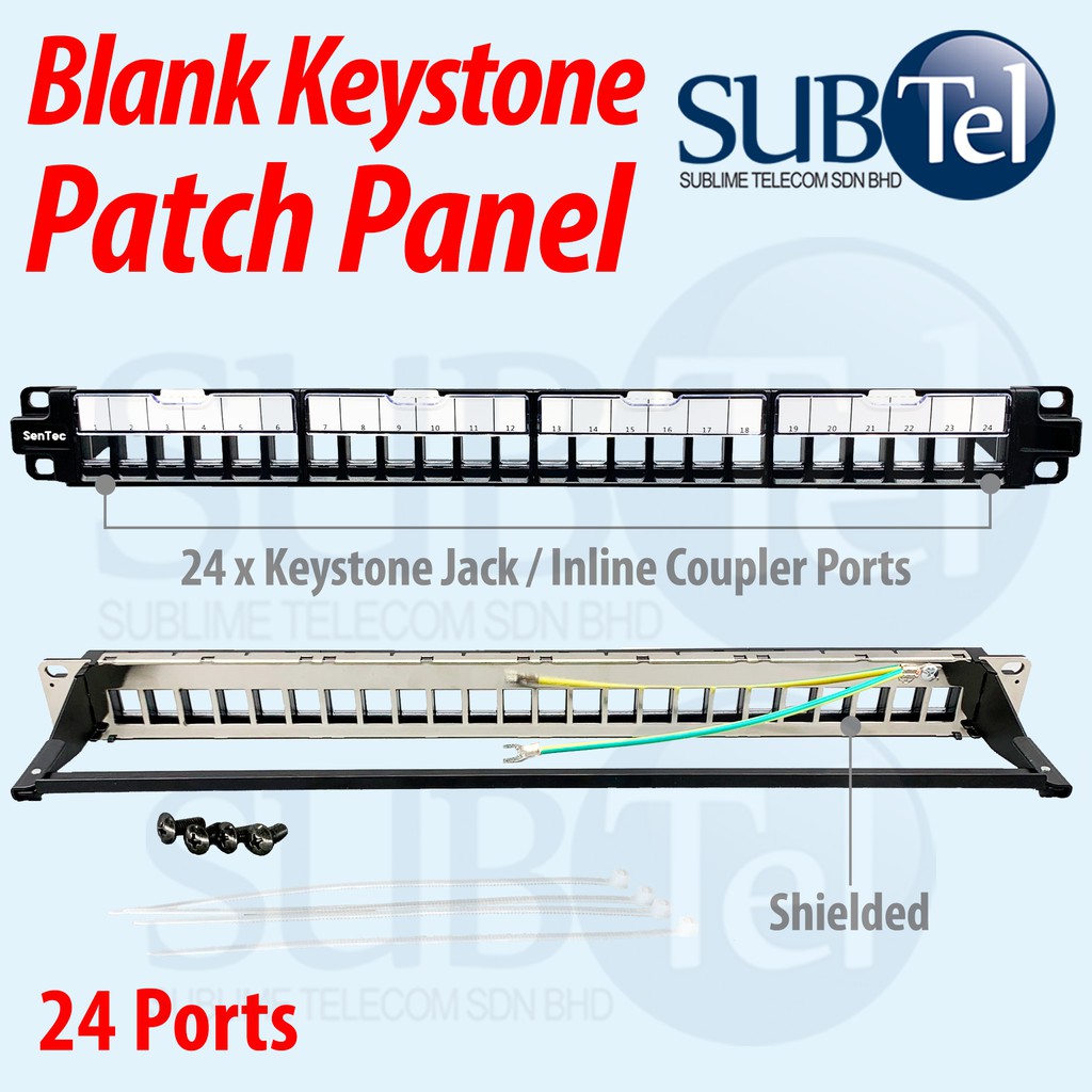 24-Port Blank Shielded Keystone Jack Patch Panel RJ45 19" 1U Rackmount 24 Ports CAT6 CAT7 CAT8 CAT5e CAT3